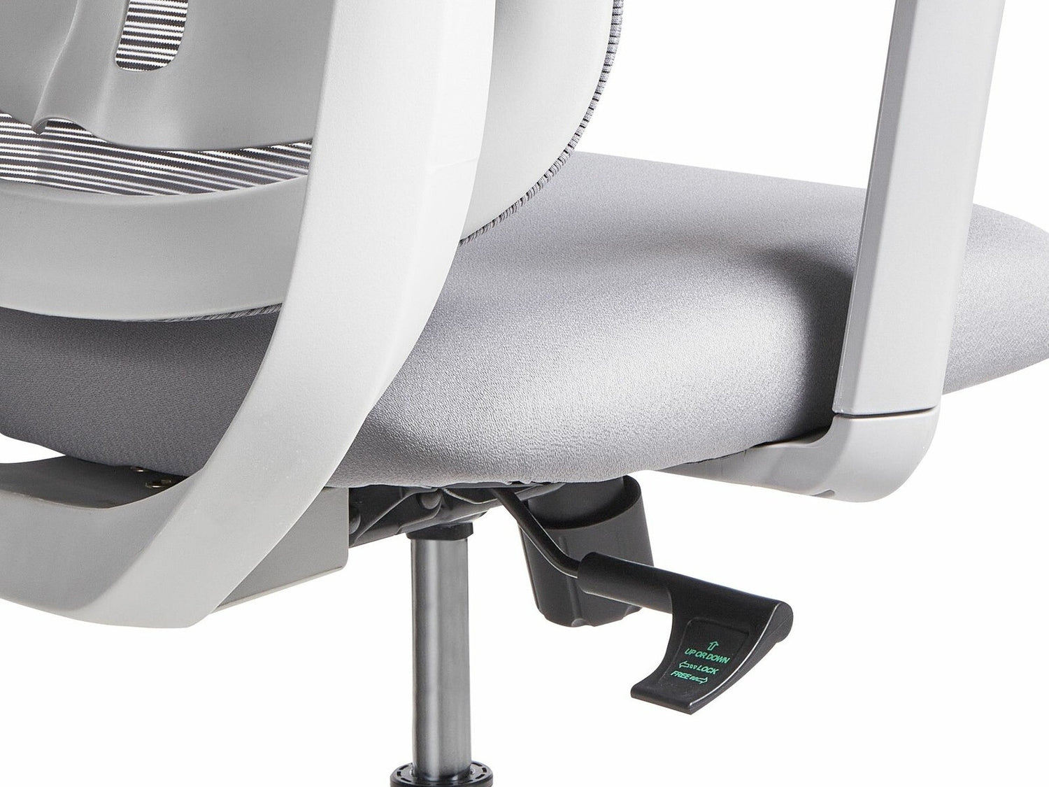 Mums visiem ir dažādas vajadzības, tāpēc ir ērti, kad mēbeles pielāgojas mums. Sēdekļa bloķēšanas funkcija nodrošina sēdēšanas komfortu. Izmantojiet vienu rokturi, lai izvēlētos pareizo stāvokli, un pēc tam bloķējiet krēsla stāvokli. Pateicoties šim mehānismam, Jūs varat bloķēt krēslu vienā pozīcijā.