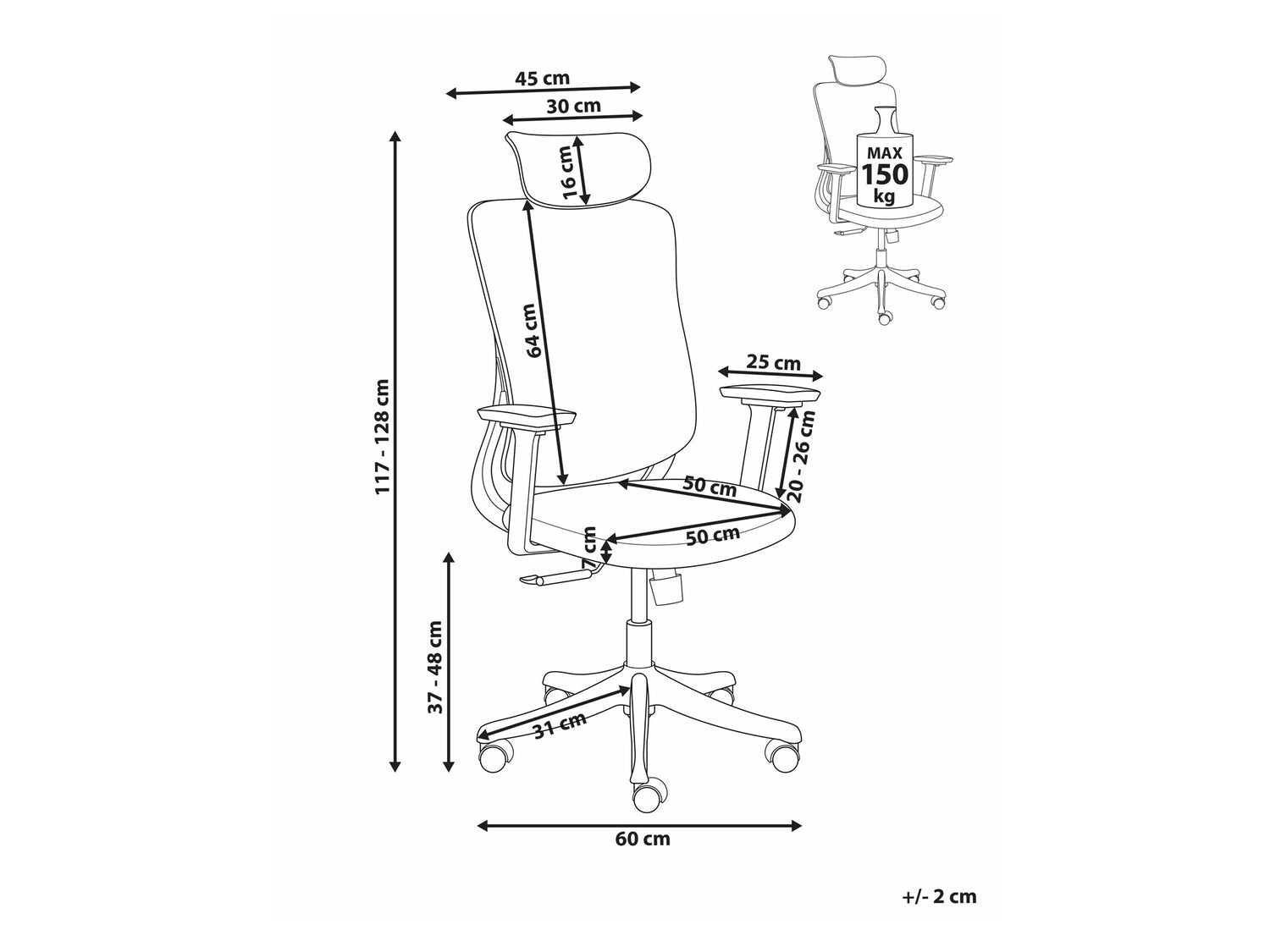 • Maksimālais sēdekļa augstums