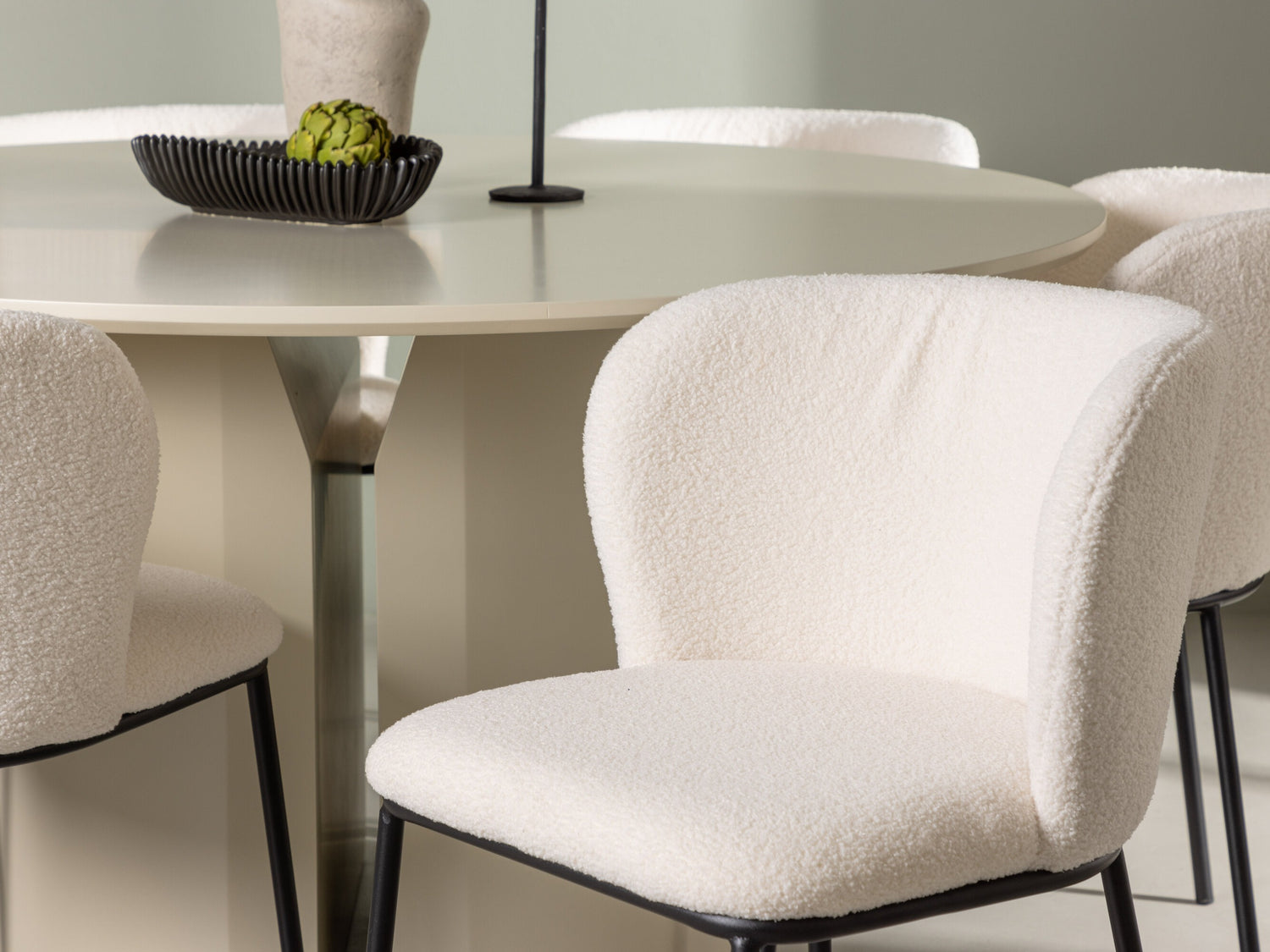 "Boucle" (Bouclé) audums ir pazīstams ar savu unikālo tekstūru, ko veido dažāda izmēra cilpas un mezgli. Tas piešķir mēbelēm raksturu un mājīgumu. Auduma tekstūra var būt mīksta vai līdzīga vilnai. Pateicoties izturīgajai struktūrai, šis audums labi saglabā formu, tāpēc tas ir piemērots dīvāniem, krēsliem un citām mēbelēm. Ja mērķis ir radīt elegantu un modernu telpu, šī auduma mēbeles būs lieliska izvēle.