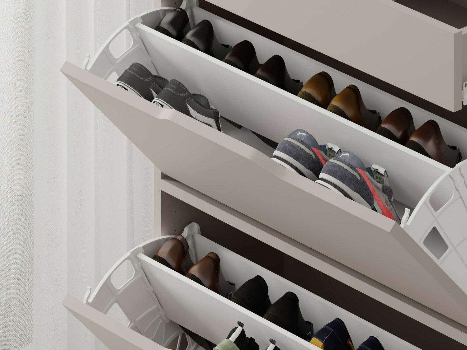 Kurpju kastes veidsAr atgāžamām atvilktnēm