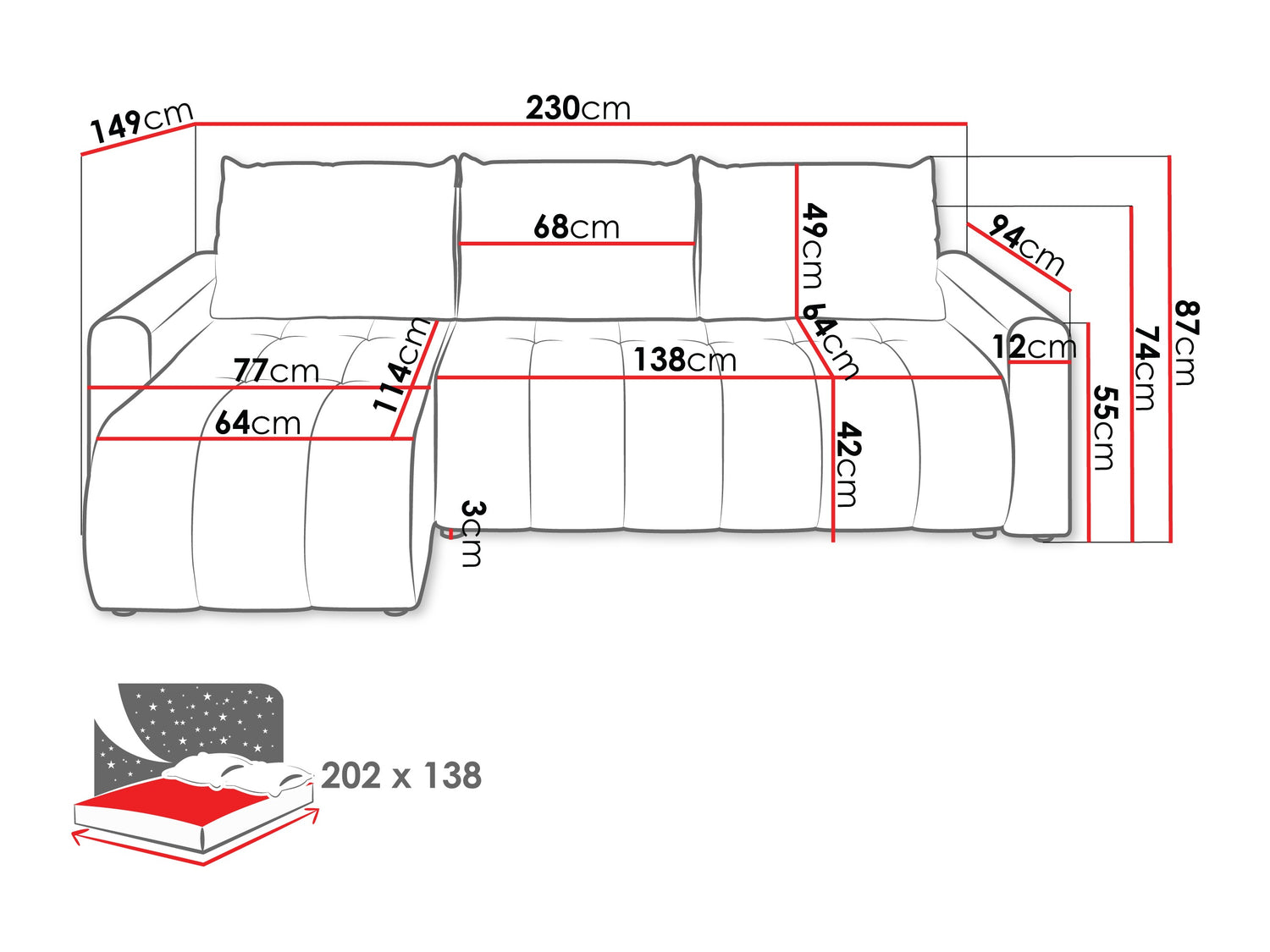 Guļamvietas garums202 cm