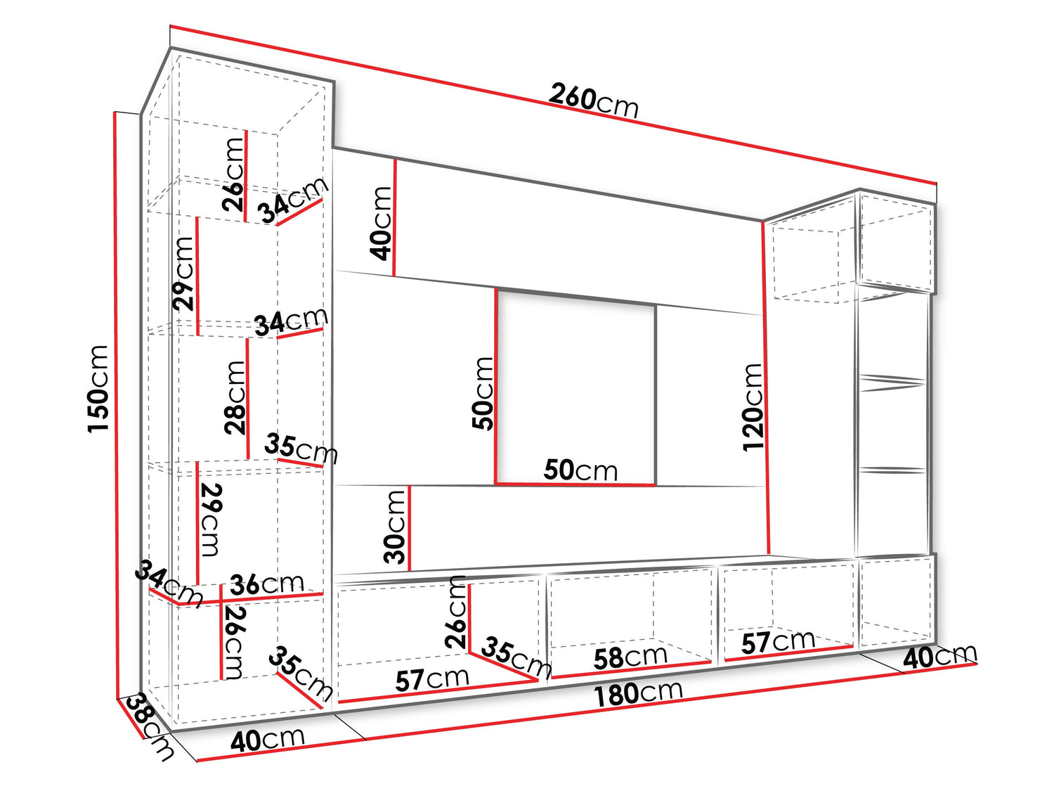 150 x 180 x 38 cm