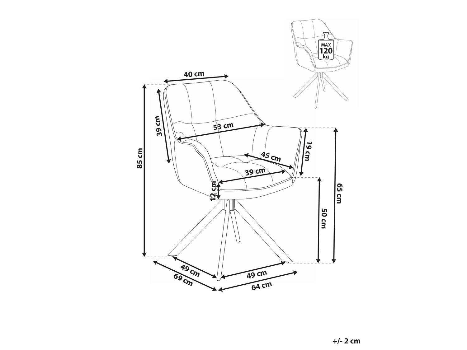 Maksimāla svara izturība120 kg