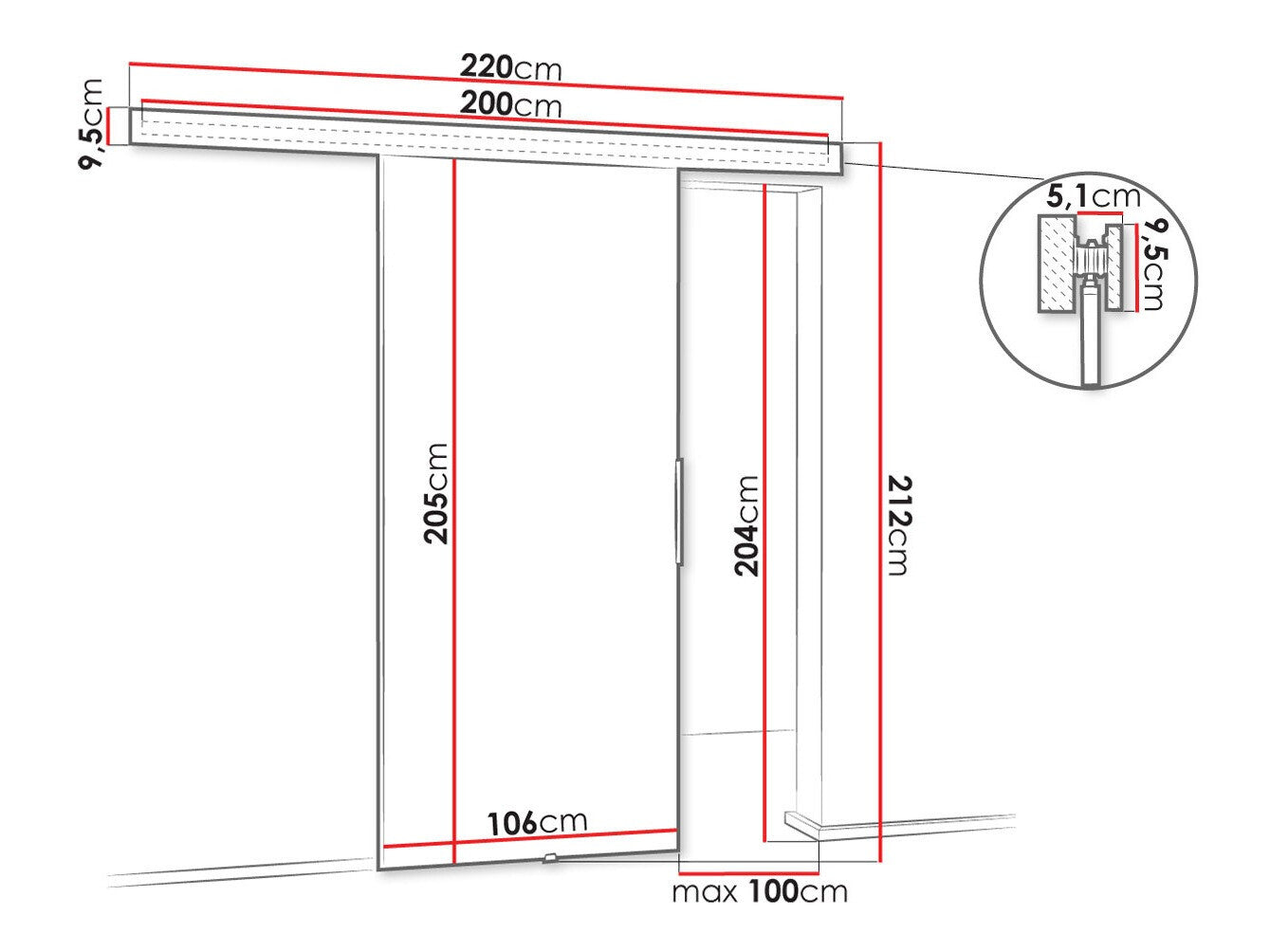 Bīdāmo durvju sistēmas izmēri200 cm