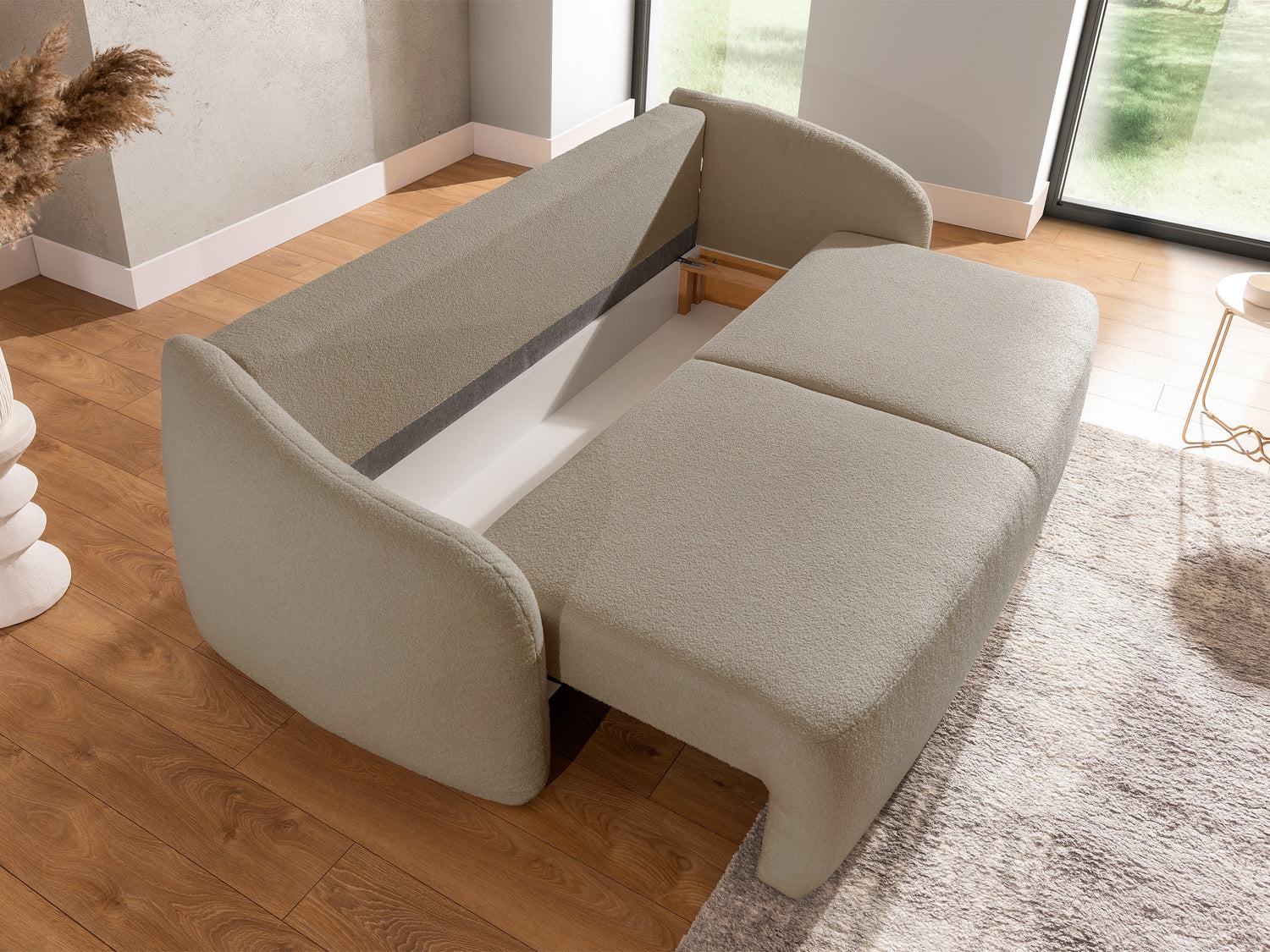Šis mēbeļu mehānisms ir unikāls ar to, ka pārvietojamā daļa kustas nepieskaroties grīdai, kā rezultātā grīda ir pasargāta no iespējamiem skrāpējumiem. Vienkārši paceliet sēdekli un viegli pievelciet to pie sevis. Pēc tam nolaidiet mēbeles aizmuguri, lai sagatavotu vietu gulēšanai.