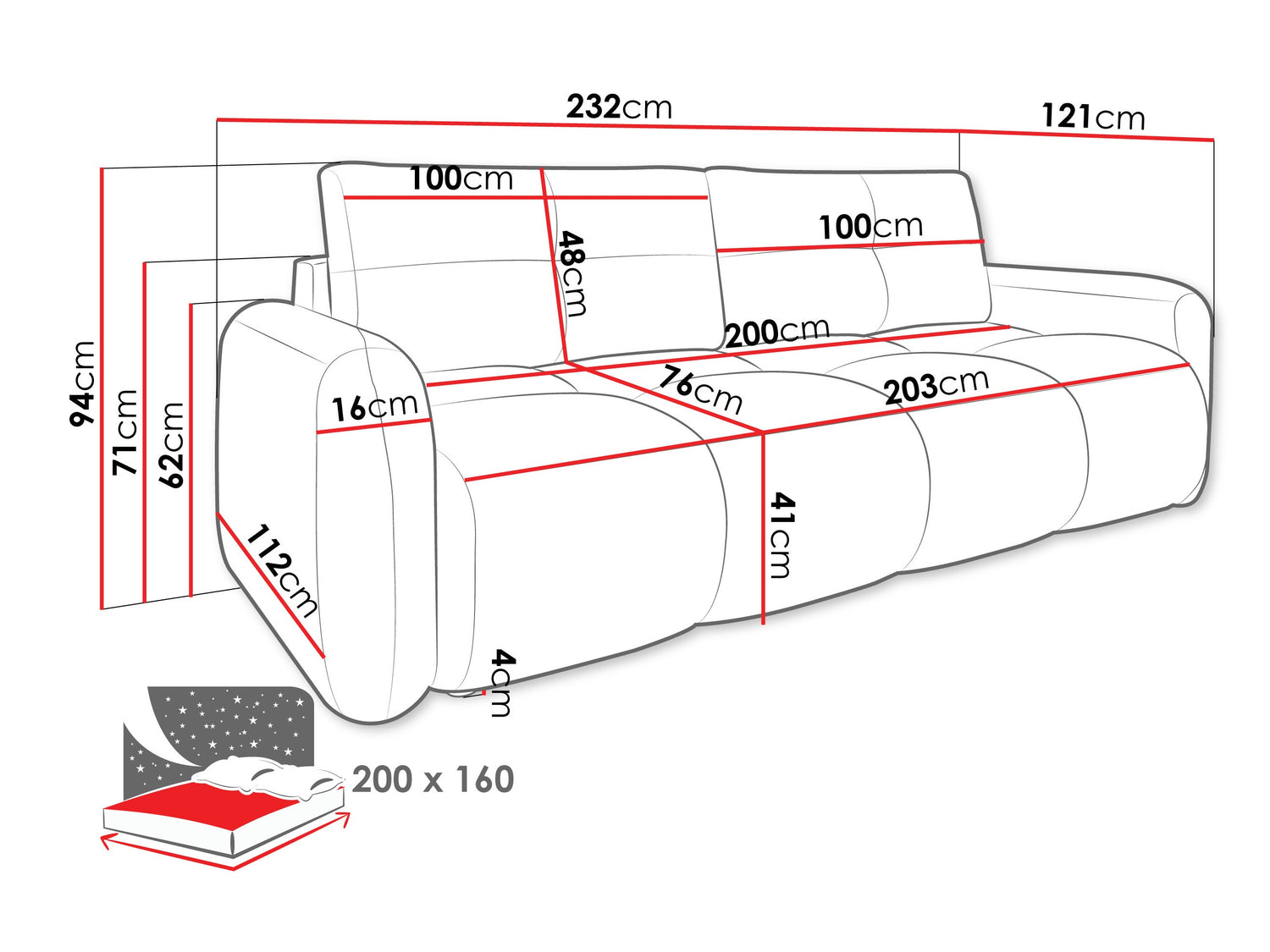 232 cm