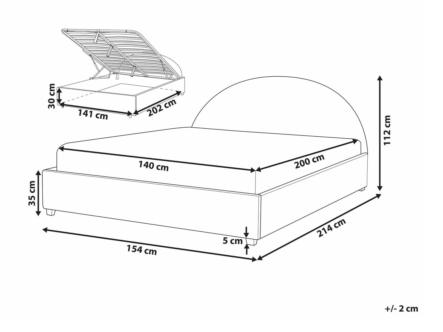 Gultas kastes izmēri30 x 141 x 202 cm