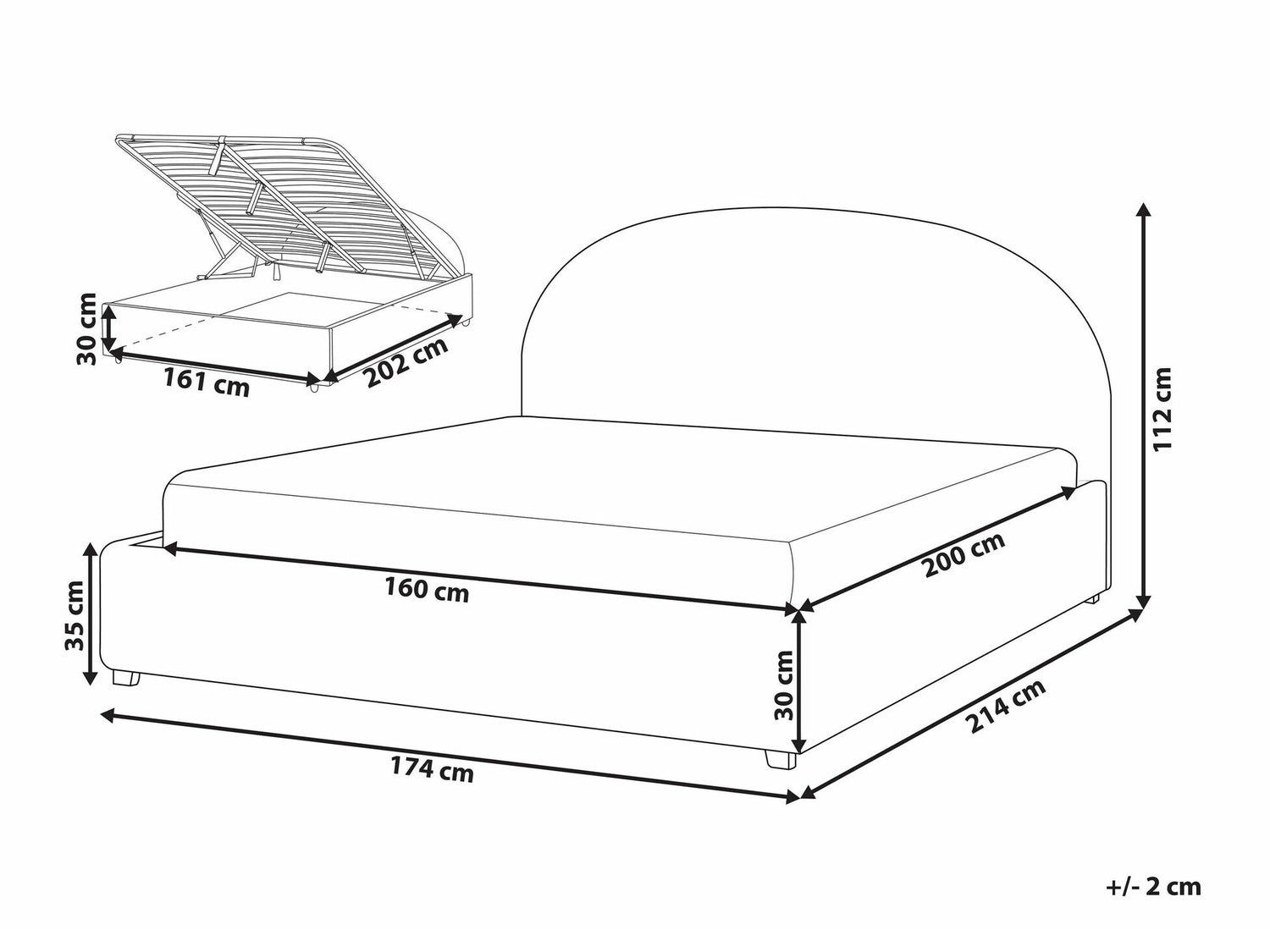 Gultas kastes izmēri30 x 161 x 202 cm