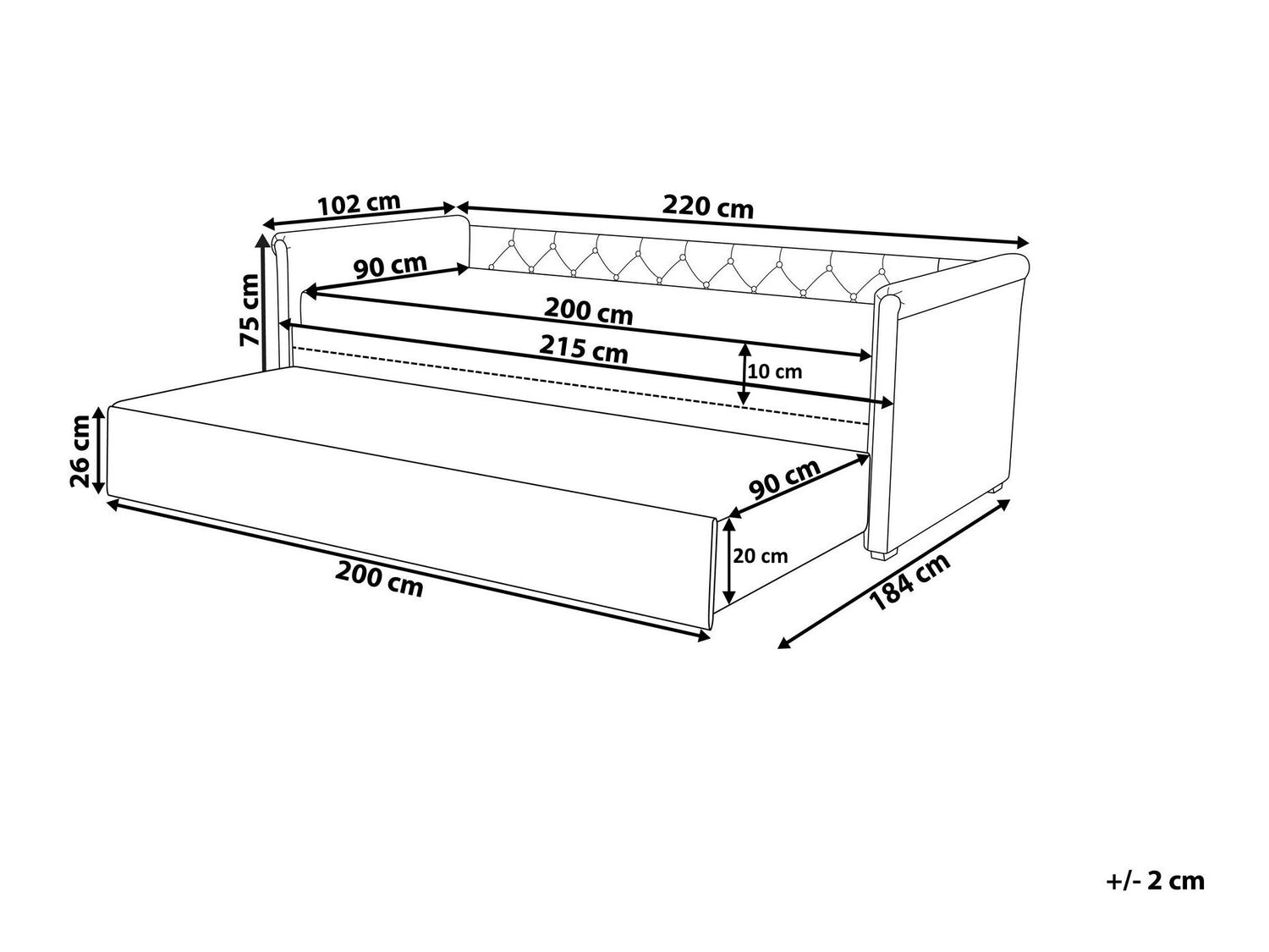 Guļamās daļas augstums26 cm