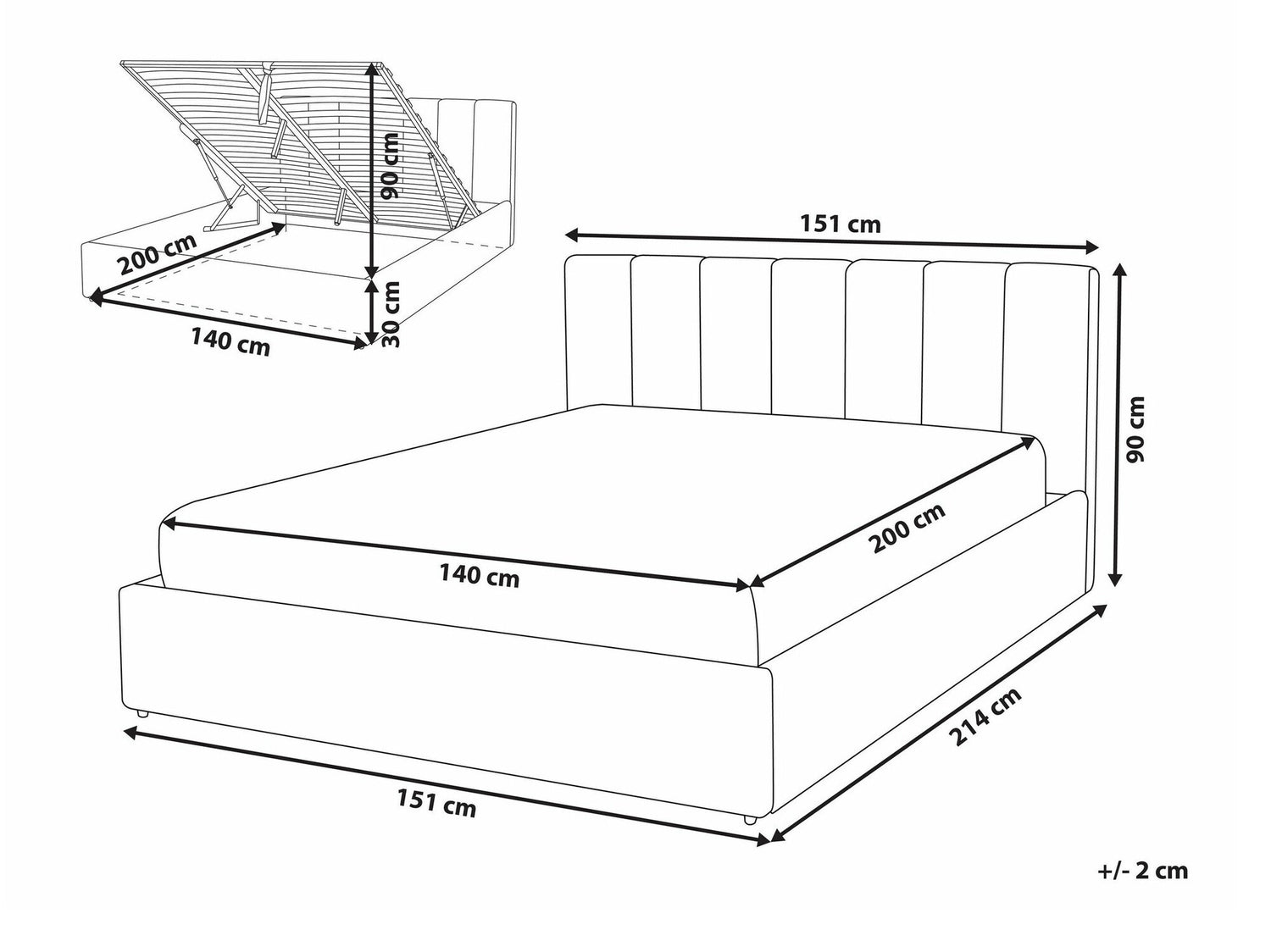 Gultas kastes izmēri30 x 140 x 200 cm