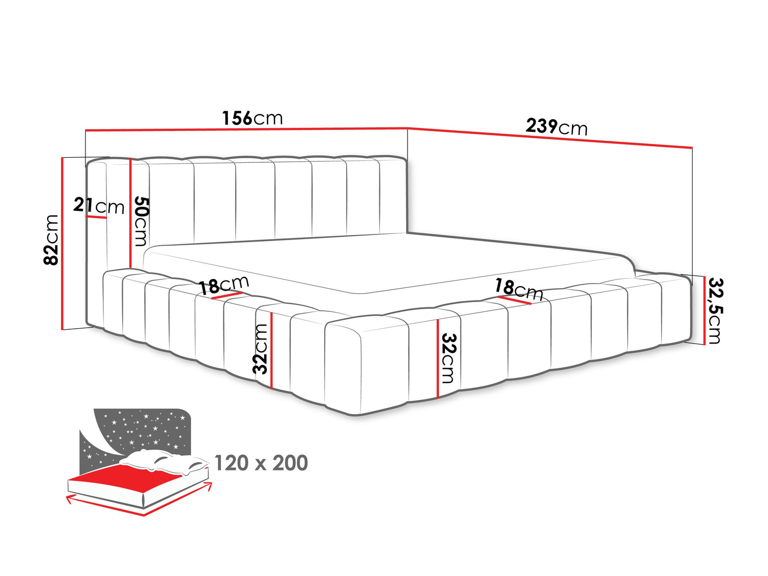 Guļamās daļas augstums32.5 cm