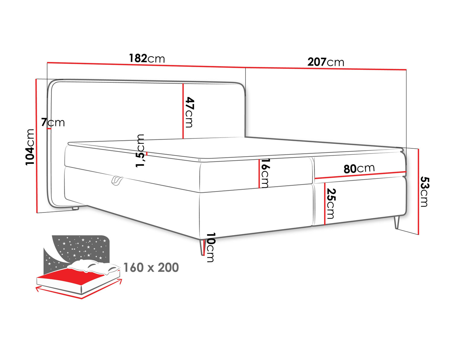 Galvgaļa izmēri104 x 182 x 7 cm