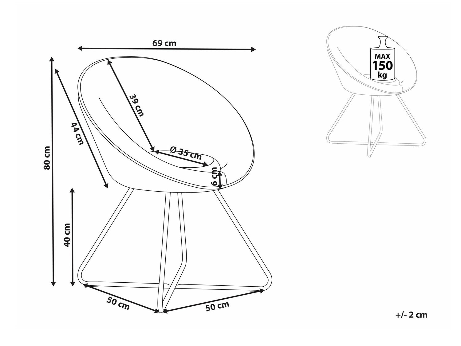 Maksimāla svara izturība150 kg