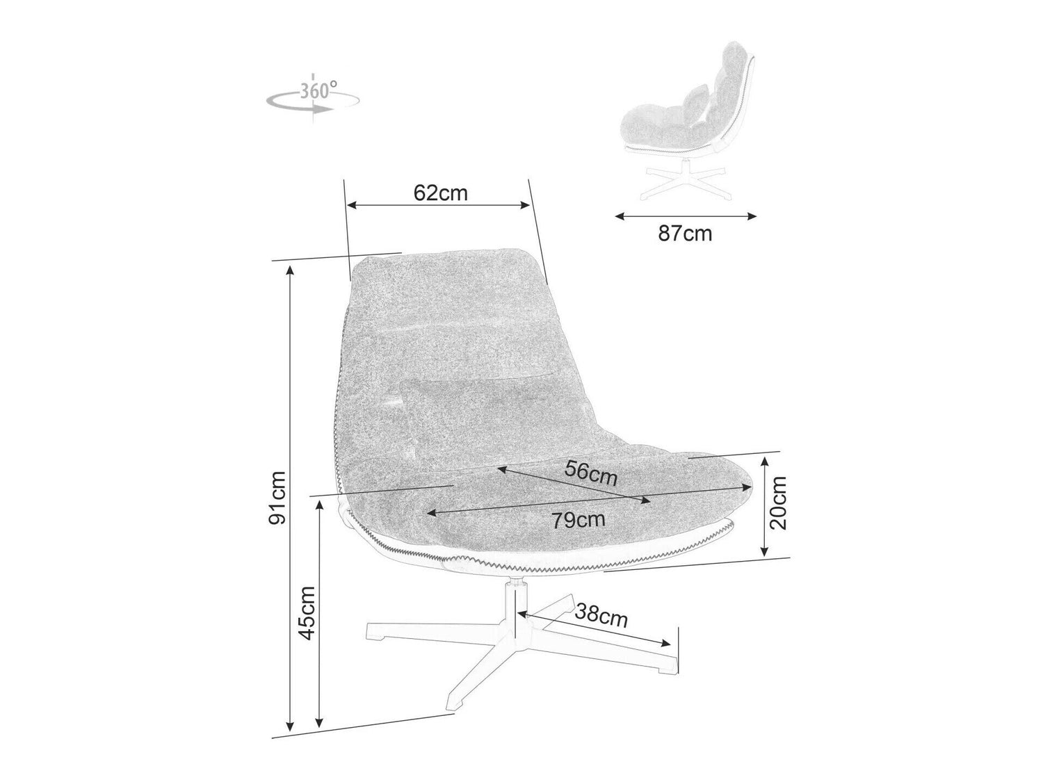 Sēdekļa biezums20 cm
