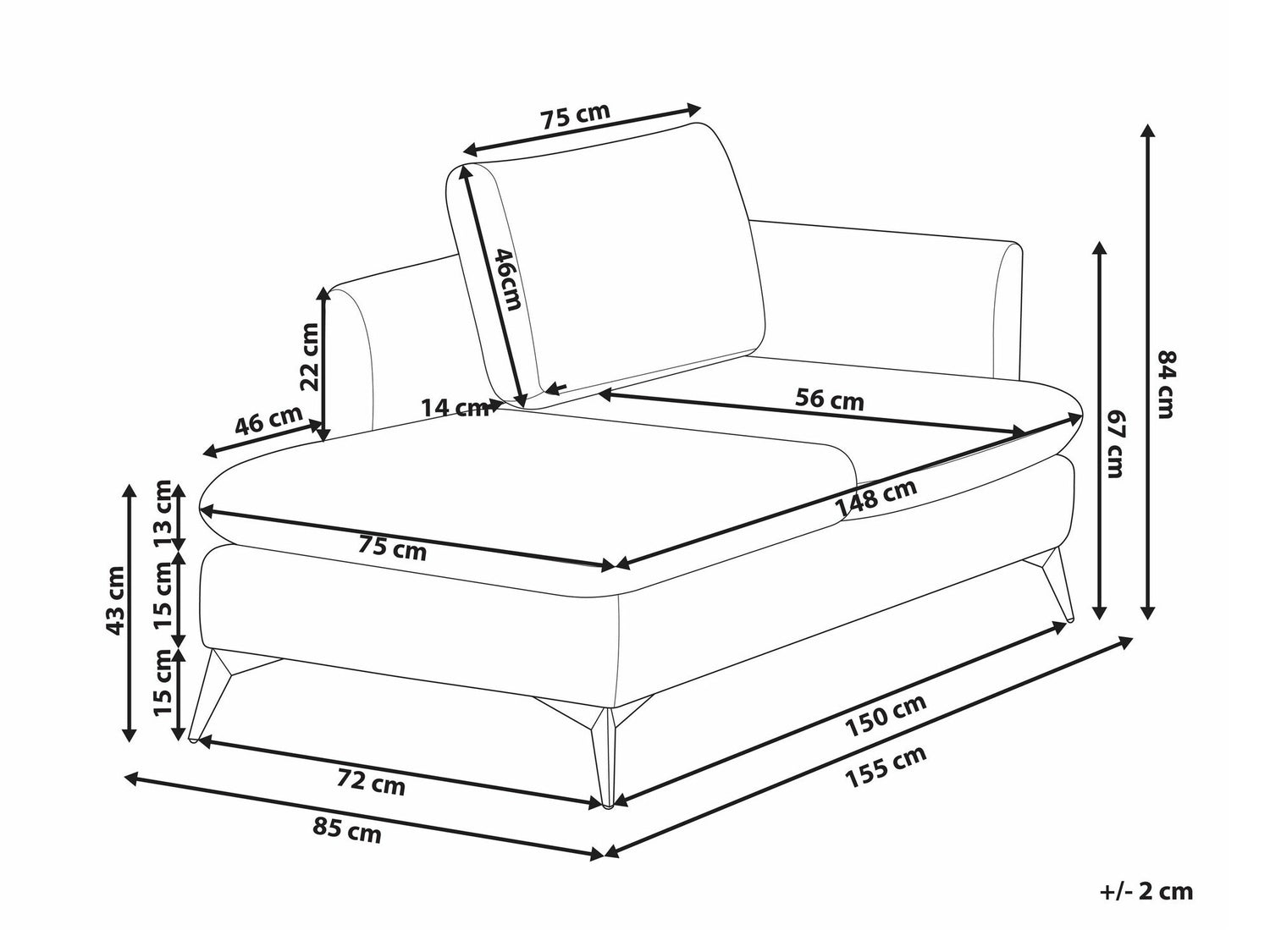 Atzveltnes augstums22 cm