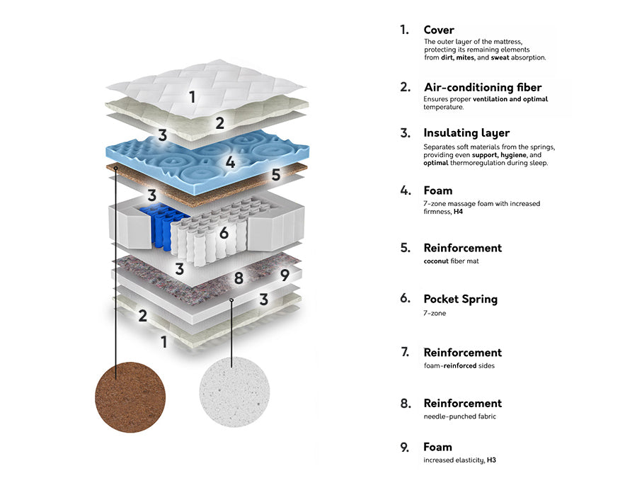 Matrača īpašībasKokosa slānis
