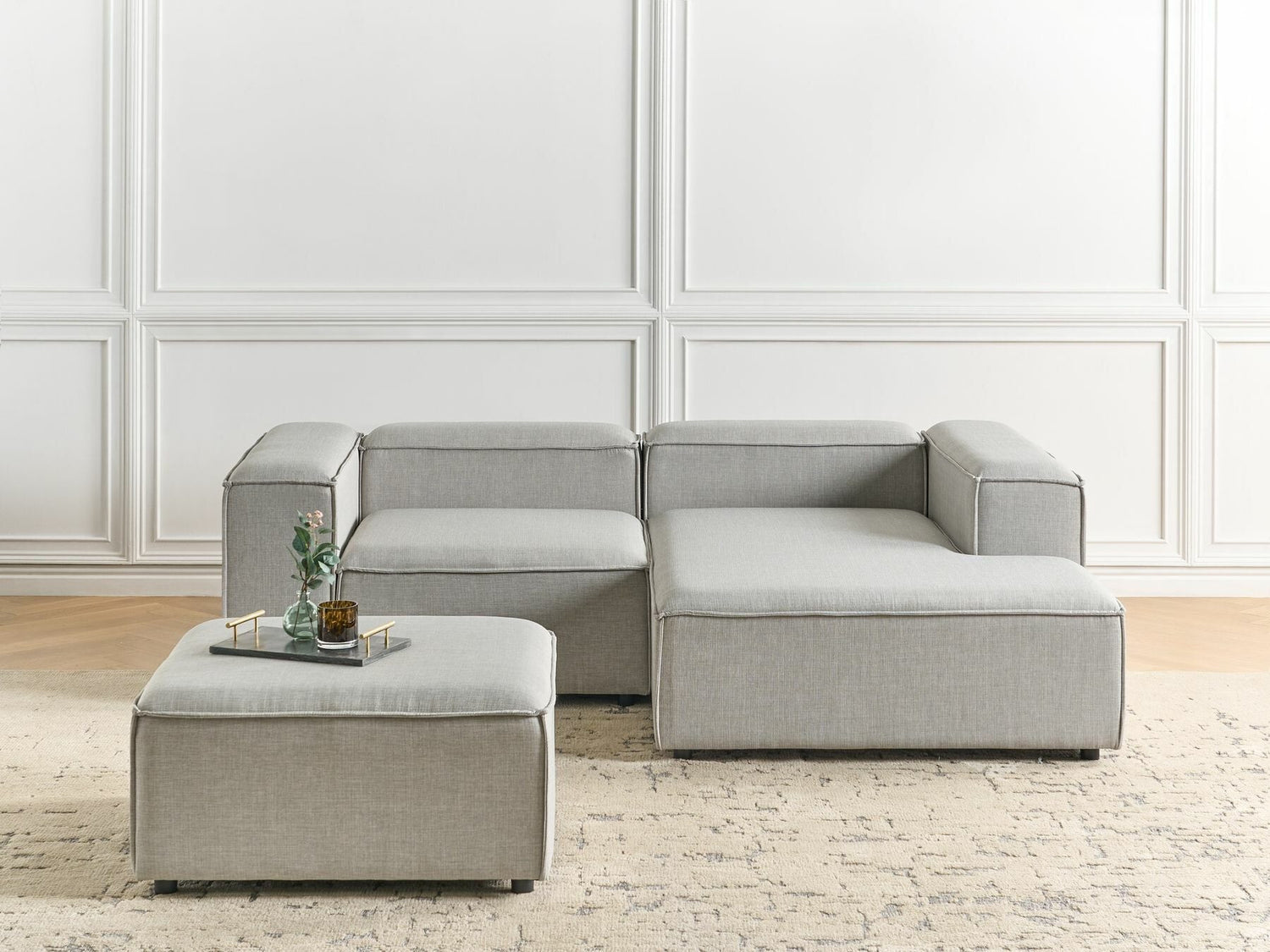 Mēbeļu aizmugures audums neatšķiras no galveno mēbeļu auduma. Jūs varat izvietot mēbeles istabas vidū.