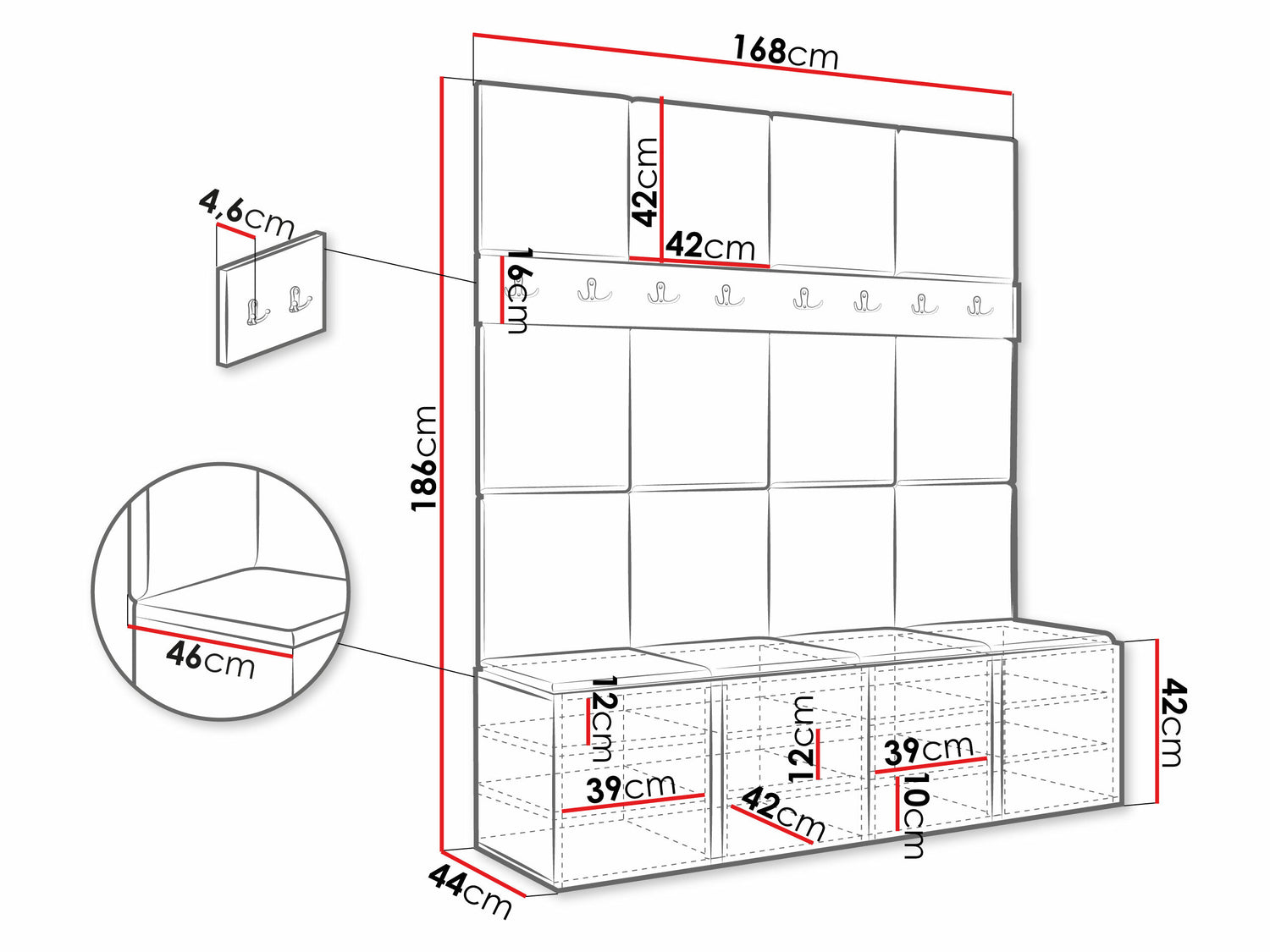 Kurpju kastes izmēri42 x 168 x 46 cm
