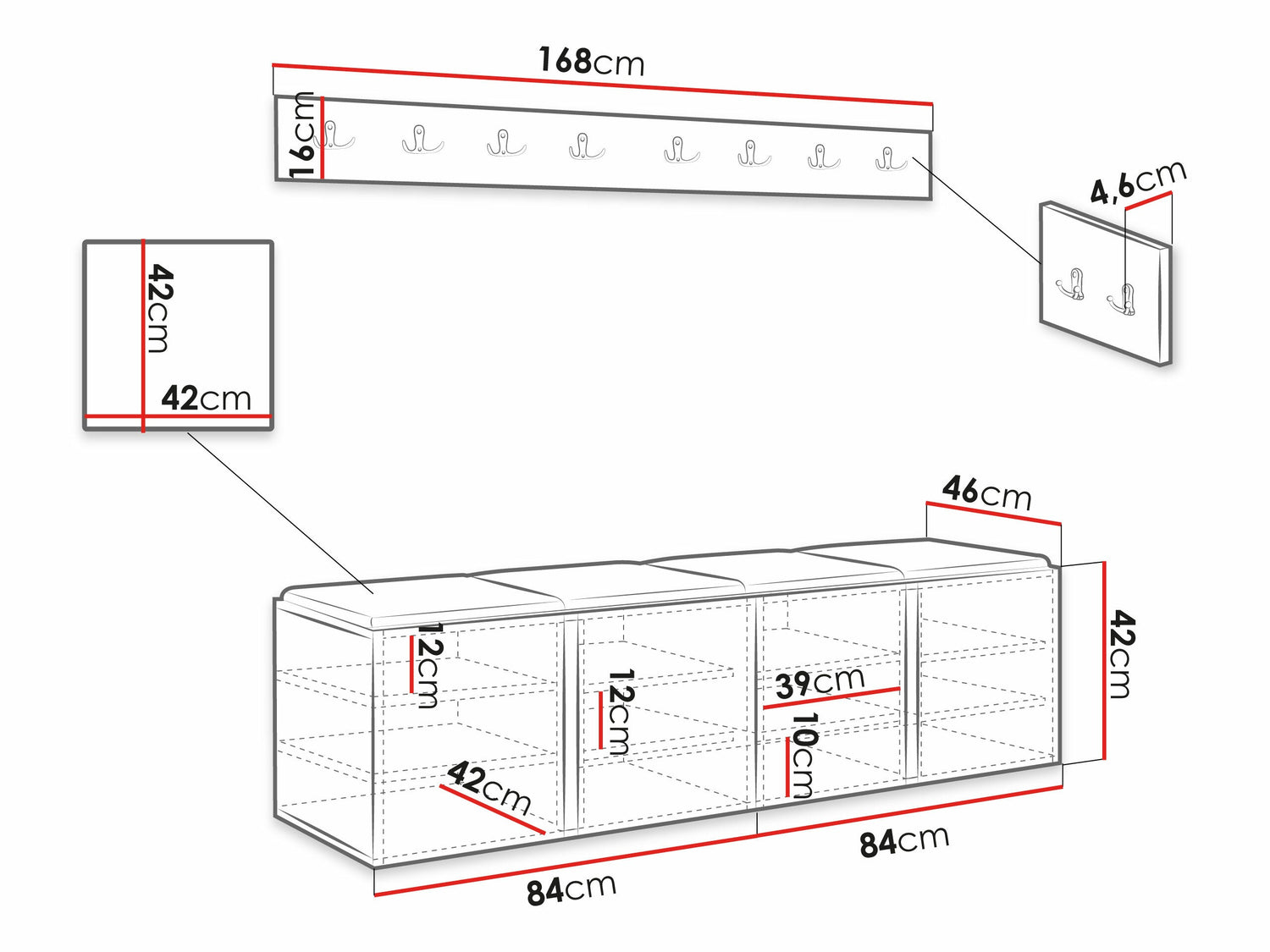 Kurpju kastes izmēri42 x 168 x 46 cm