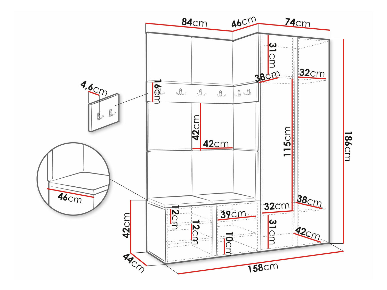 Skapja platums186 x 74 x 46 cm