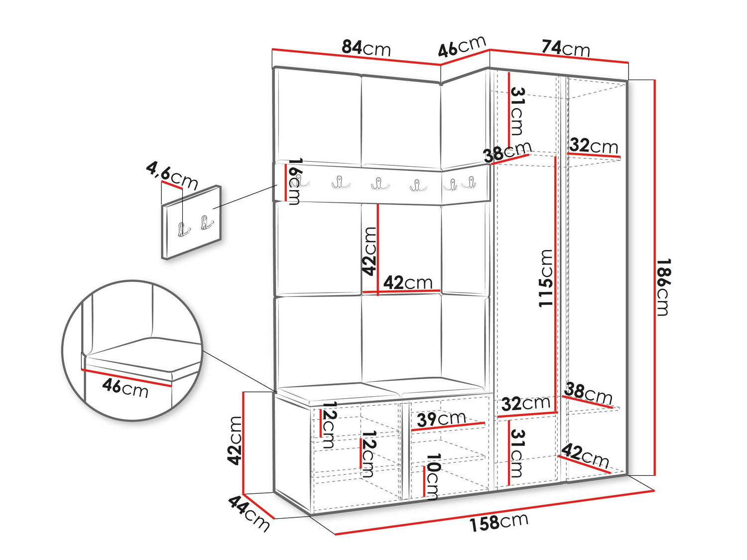 Skapja platums186 x 74 x 46 cm