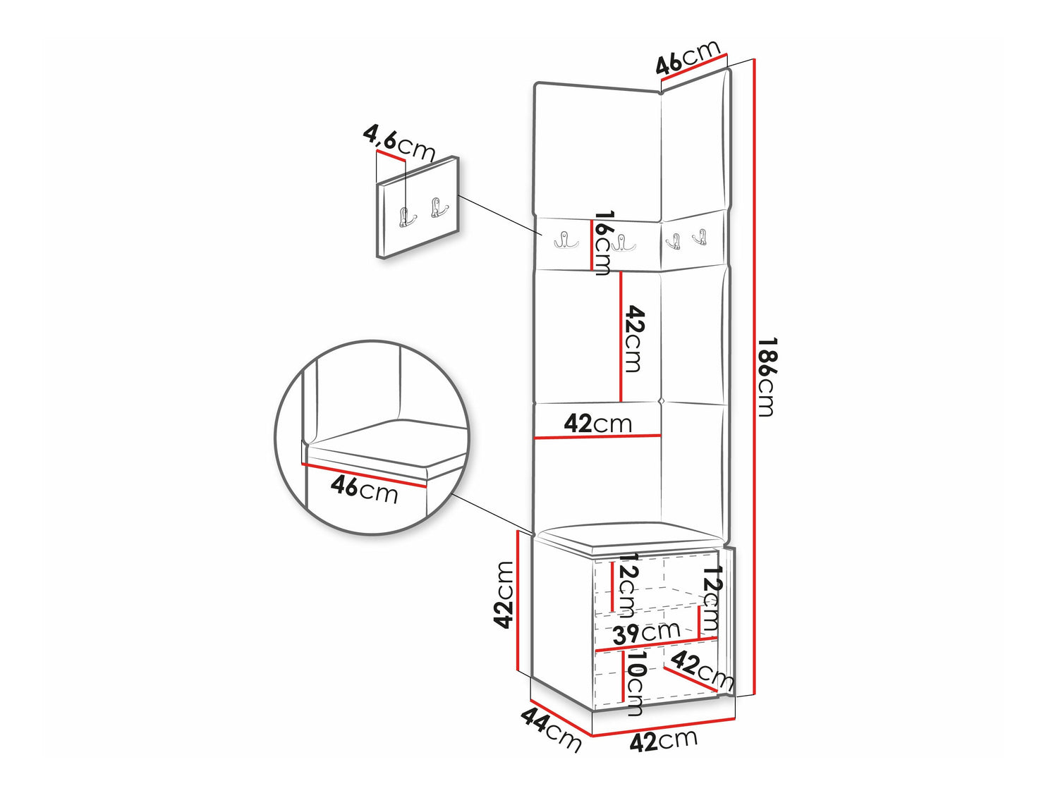 Pakaramo izmēri16 x 42 x 4.6 x 46 x 4.6 cm