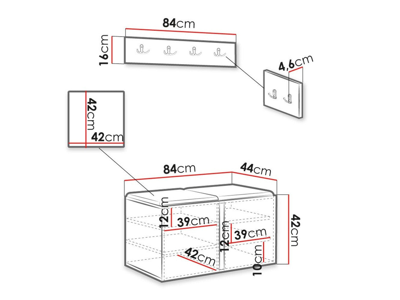 Kurpju kastes izmēri42 x 84 x 44 cm