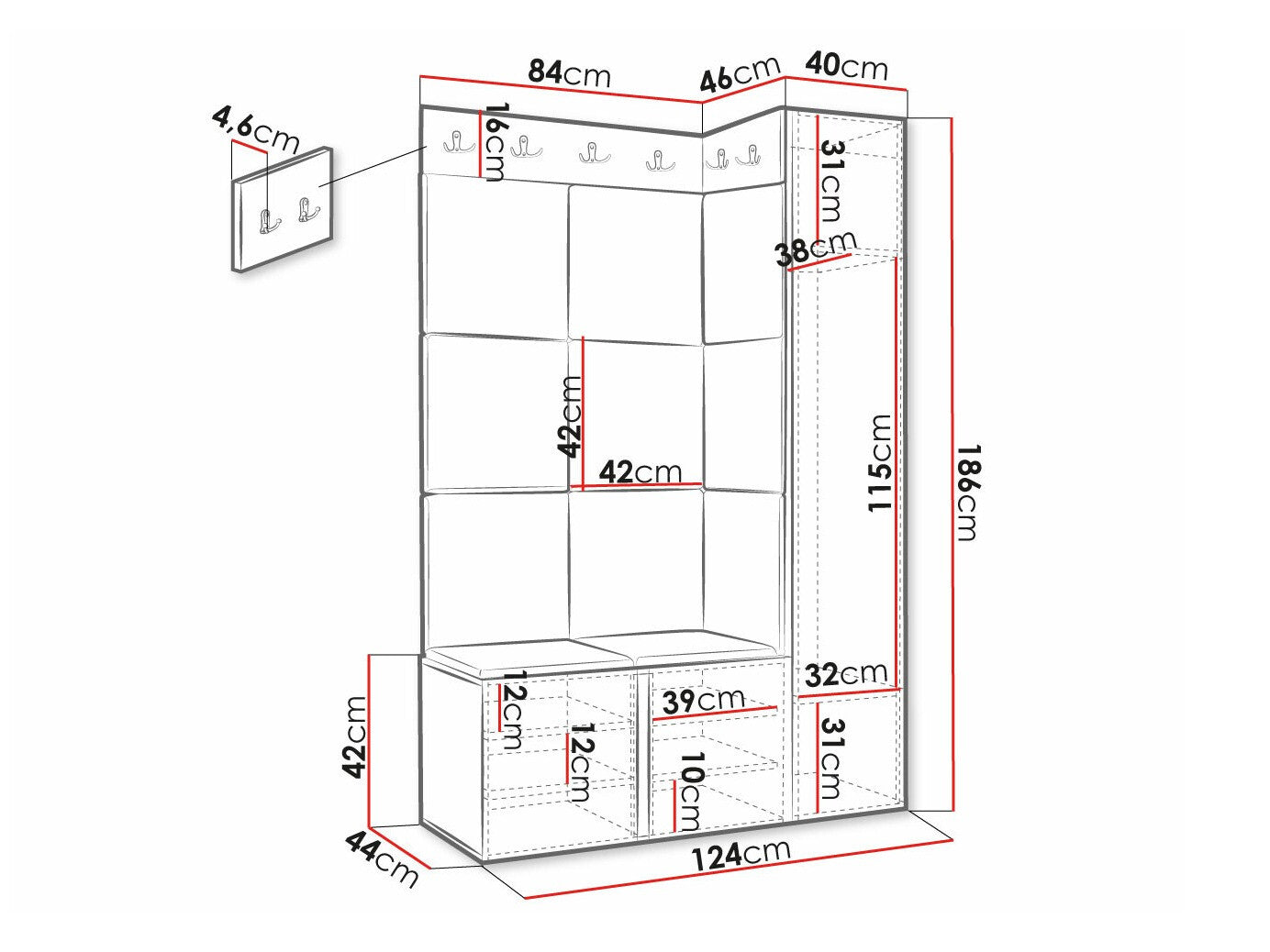 Skapja platums186 x 40 x 46 cm