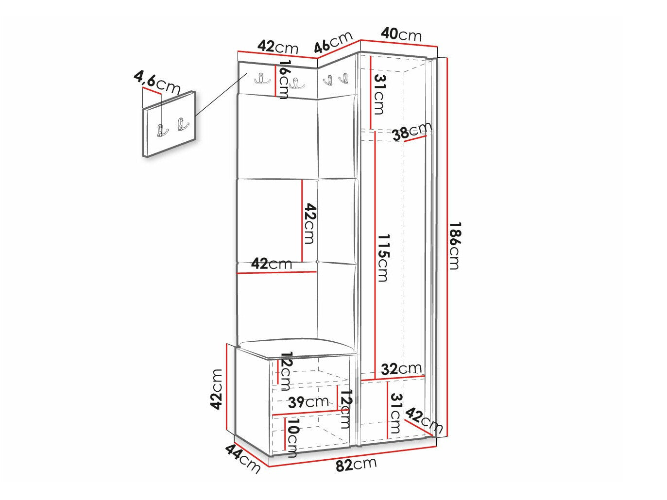 Skapja platums186 x 40 x 46 cm