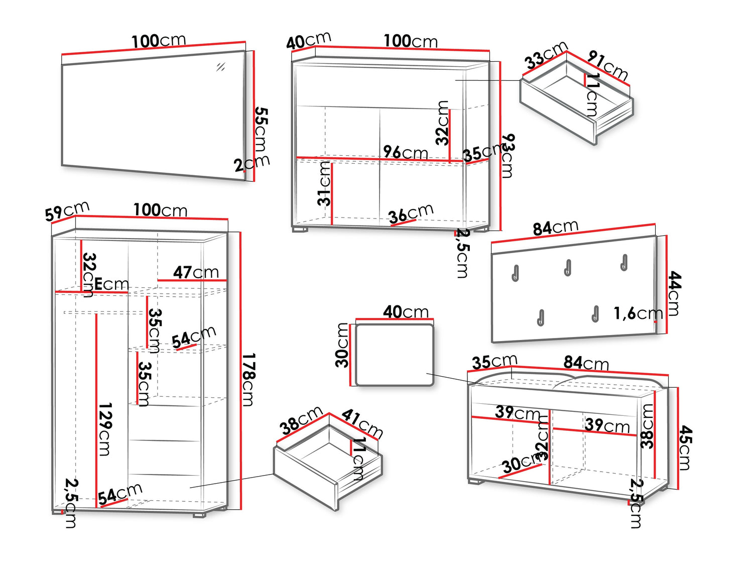 178 x 100 x 59 cm
