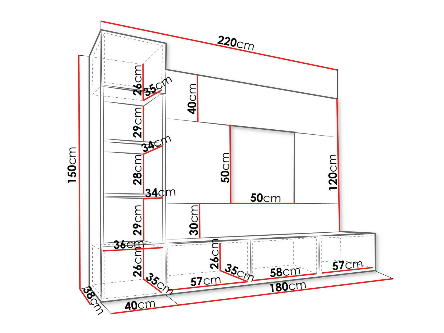 TV galda izmēri150 x 180 x 38 cm