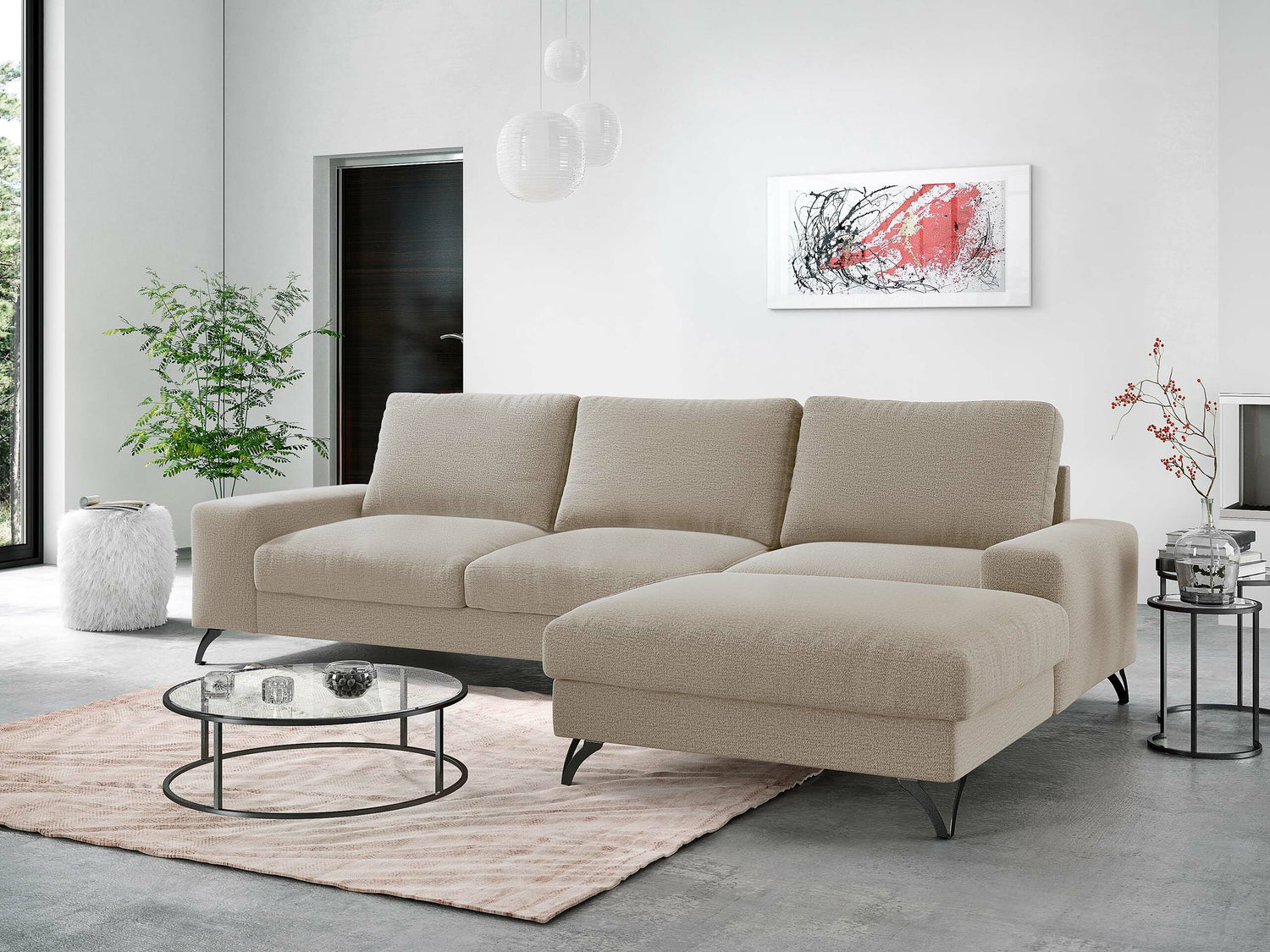 Skatoties uz dīvānu no priekšpuses, dīvāna garākā sānu mala atrodas labajā pusē. Izvēlieties telpas plānojumam atbilstošu stūra dīvāna variantu, lai tas netraucētu ērti un brīvi pārvietoties.