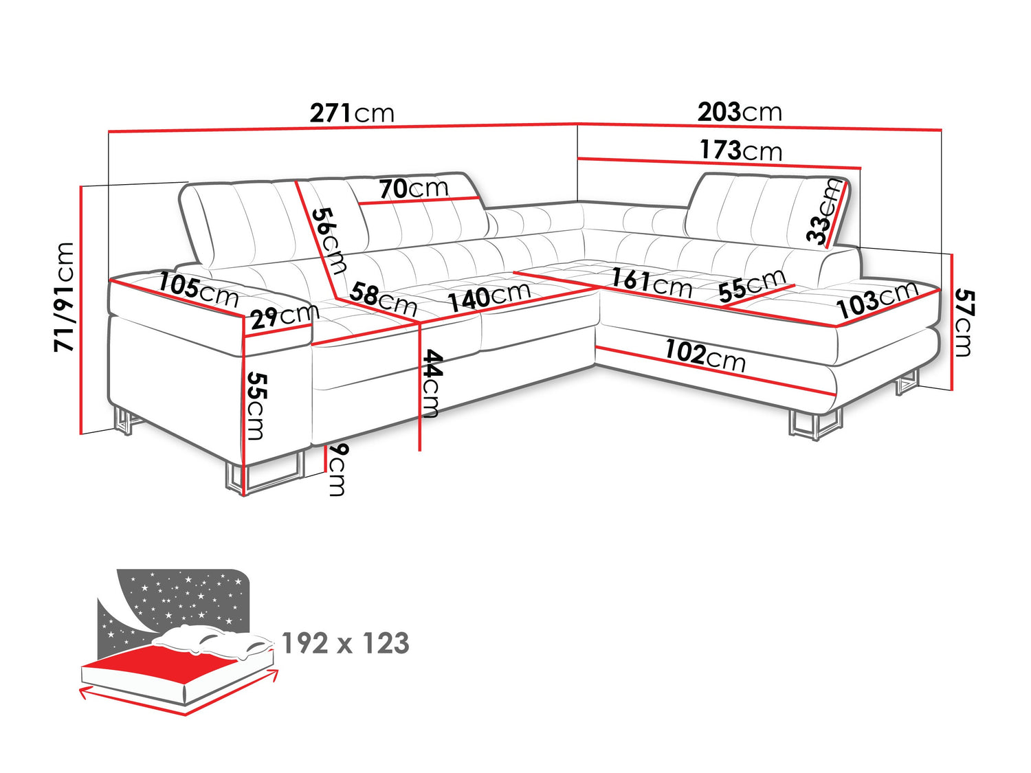 Guļamvietas garums192 cm