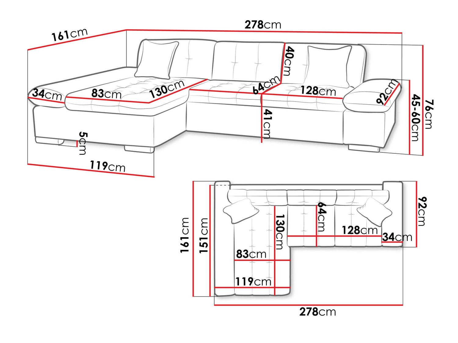 Iepakojuma izmērs1 X 170 x 91 x 75 (cm) / 44 kg1 X 158 x 111 x 77 (cm) / 54 kg