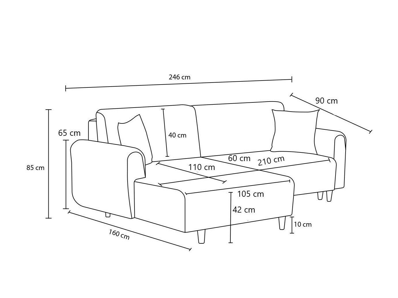 Guļamvietas garums210 cm