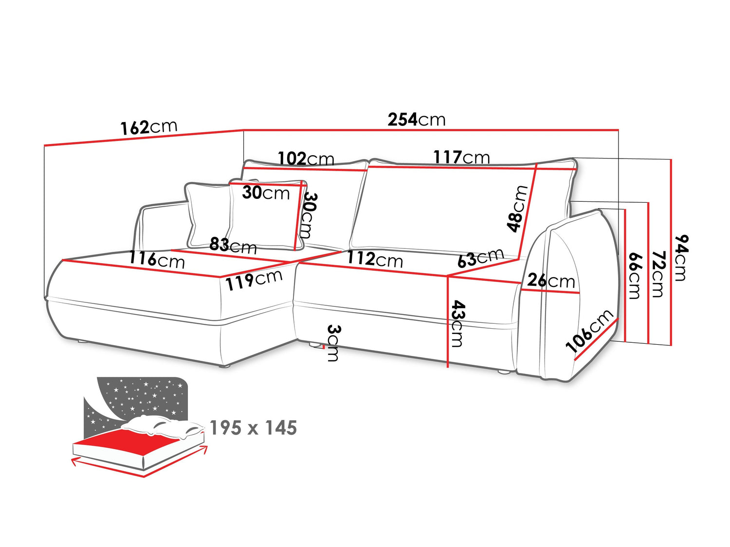 • Guļamvietas garums