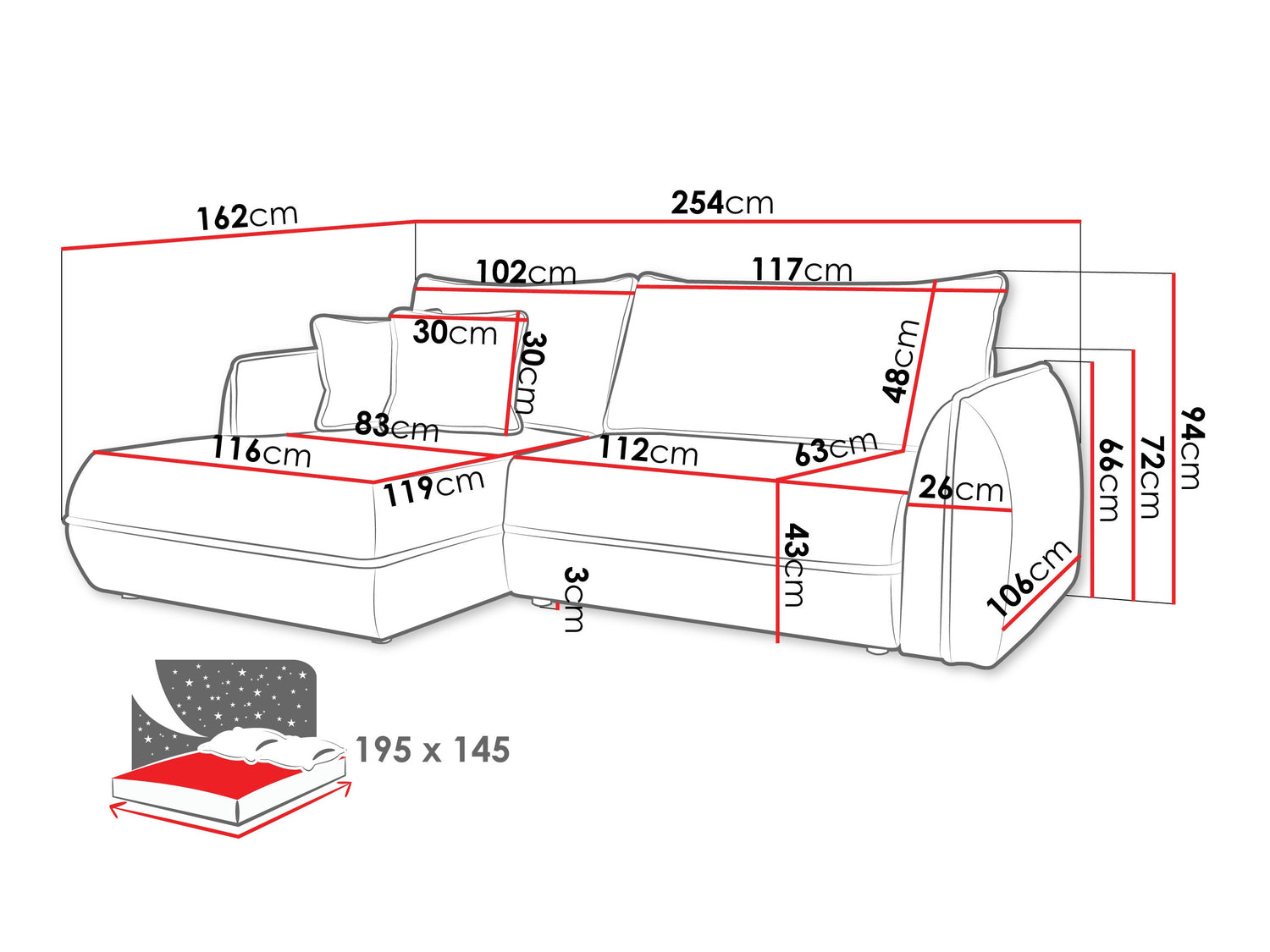 • Guļamvietas garums