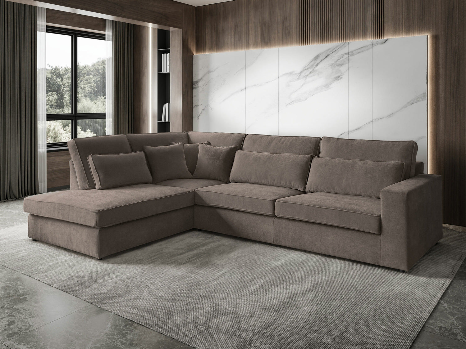 Skatoties uz dīvānu no priekšpuses, dīvāna garākā sānu mala atrodas kreisajā pusē. Izvēlieties telpas plānojumam atbilstošu stūra dīvāna variantu, lai tas netraucētu ērti un brīvi pārvietoties.