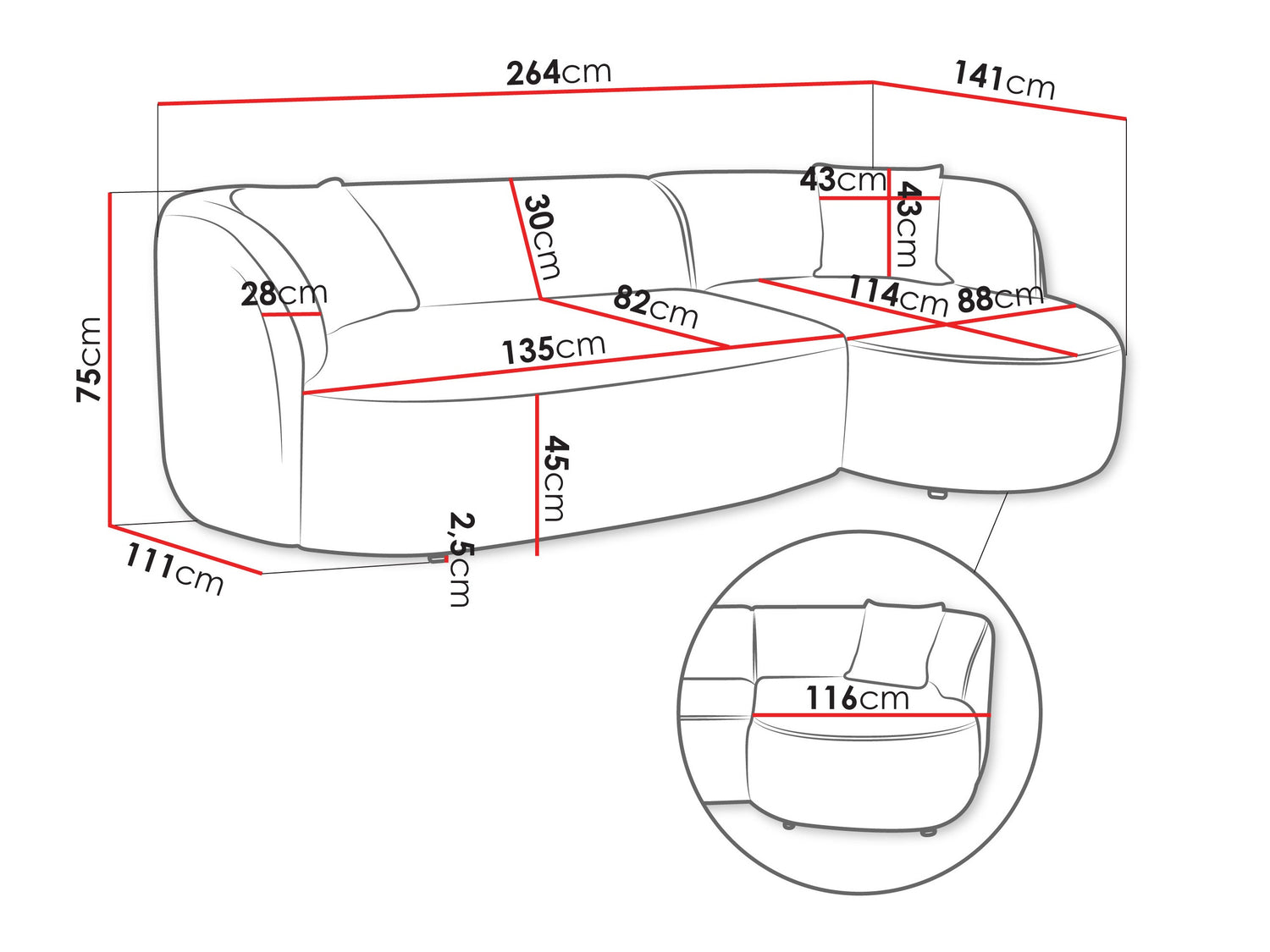 Platums264 cm
