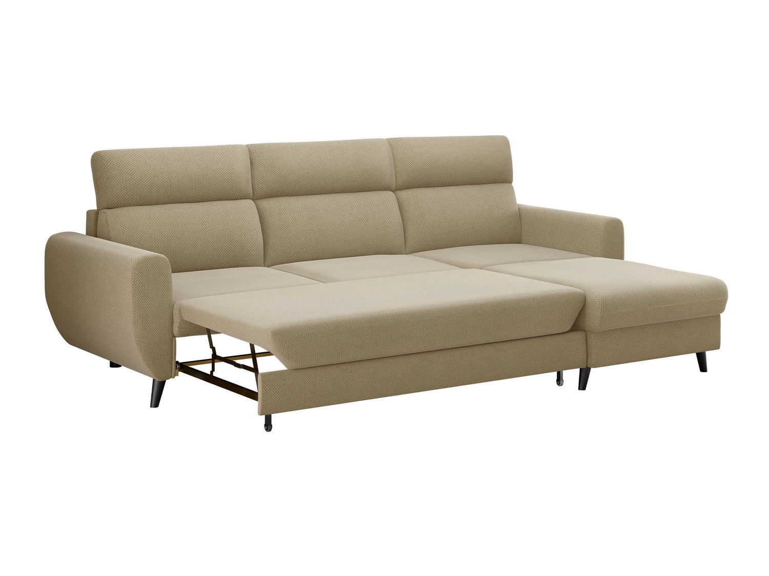 Tas ir vienkāršs un ērts risinājums, kas ļaus bez lielas piepūles pārveidot mēbeles. Atvilktne zem sēžamās daļas ir neredzama un to izvelkot, mēbele pārveidojas par lielisku guļamvietu. Lai atlocītu mēbeles, vienkārši pavelciet apakšējo daļu pret sevi un tādējādi izvelciet atvilktni ar papildu guļamzonu. Izmantojiet cilpu, lai ieceltu matraci iekšā. Šī guļamvieta ir nedaudz stingrāka nekā parasti. Pateicoties fiksētajai aizmugurei, mēbeles ar šo mehānismu var novietot tieši pie sienas.