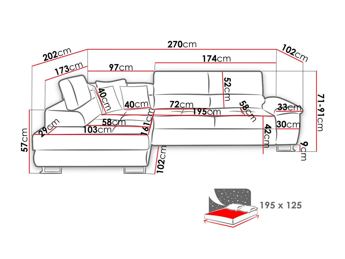 • Labās puses stūra dīvāns
