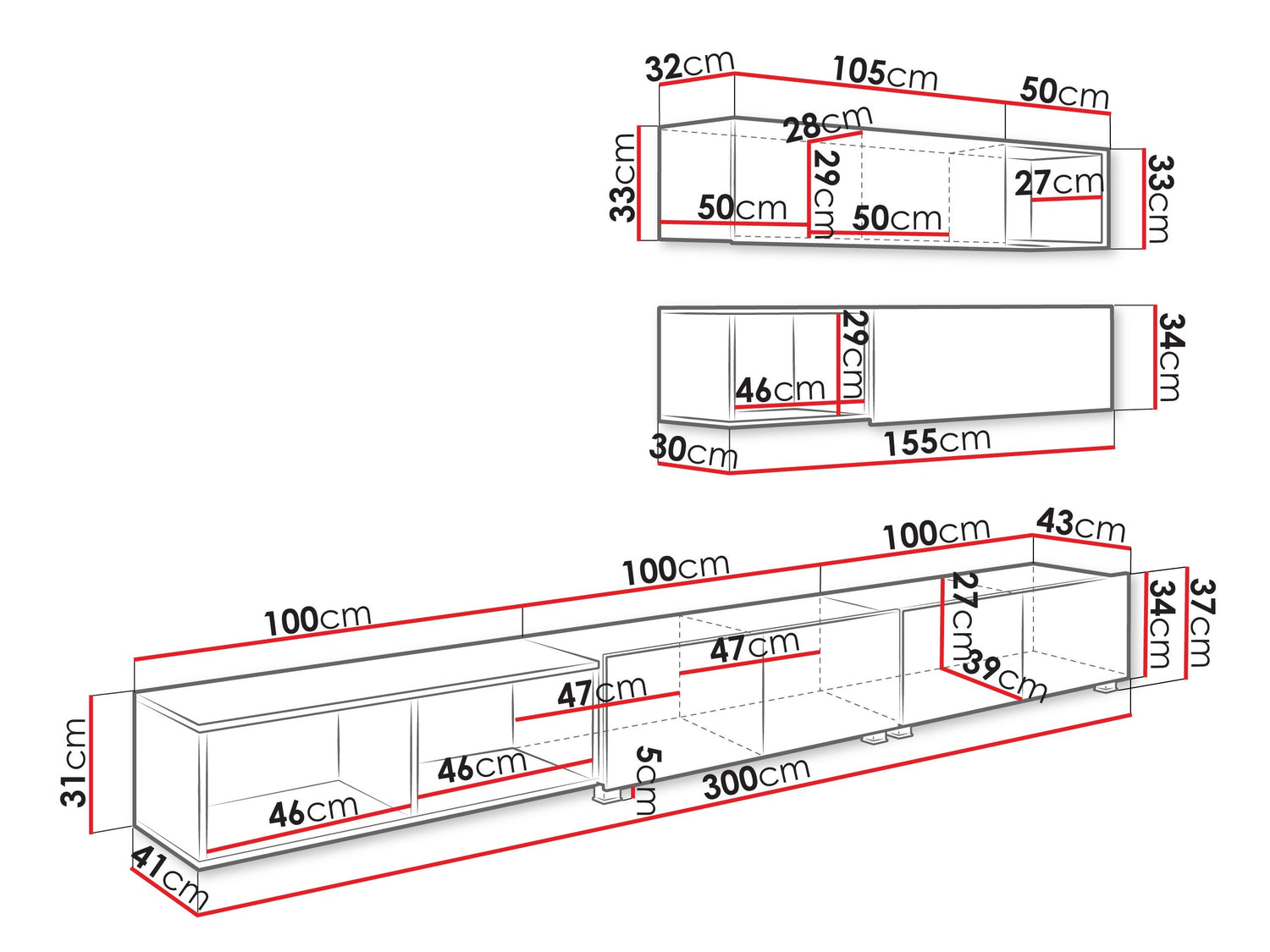 TV galda izmēri37 x 300 x 43 cm