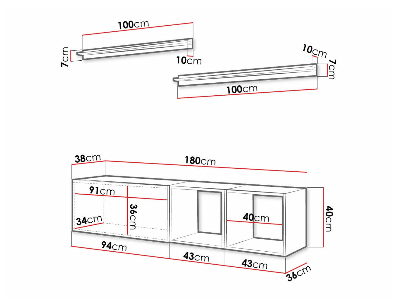 TV galda izmēri40 x 180 x 38 cm