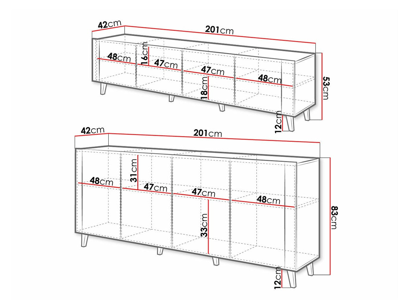 TV galda izmēri53 x 201 x 42 cm