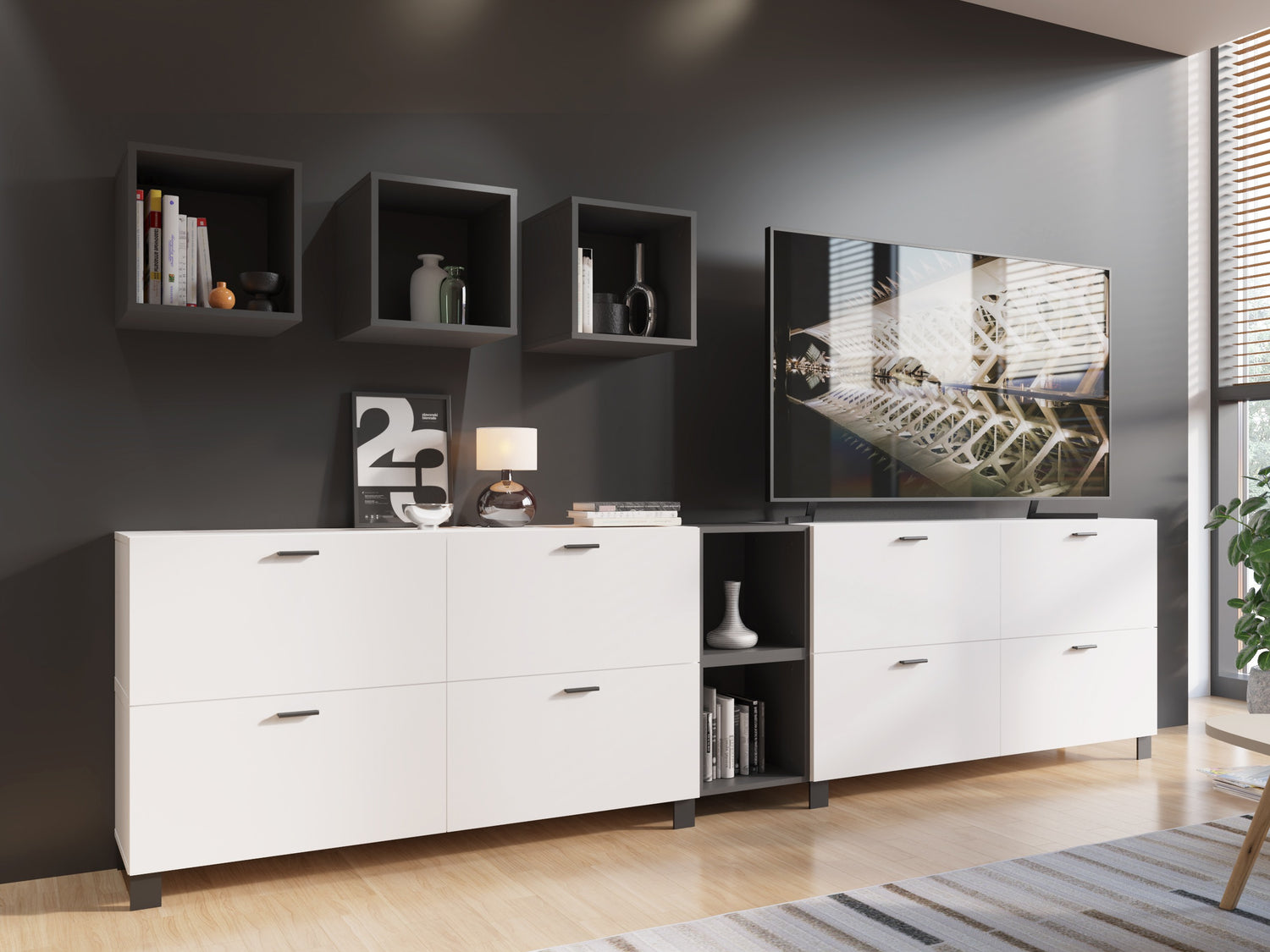 Piekaramo plauktu izmēri35.2 x 35.2 x 34.4 cm
