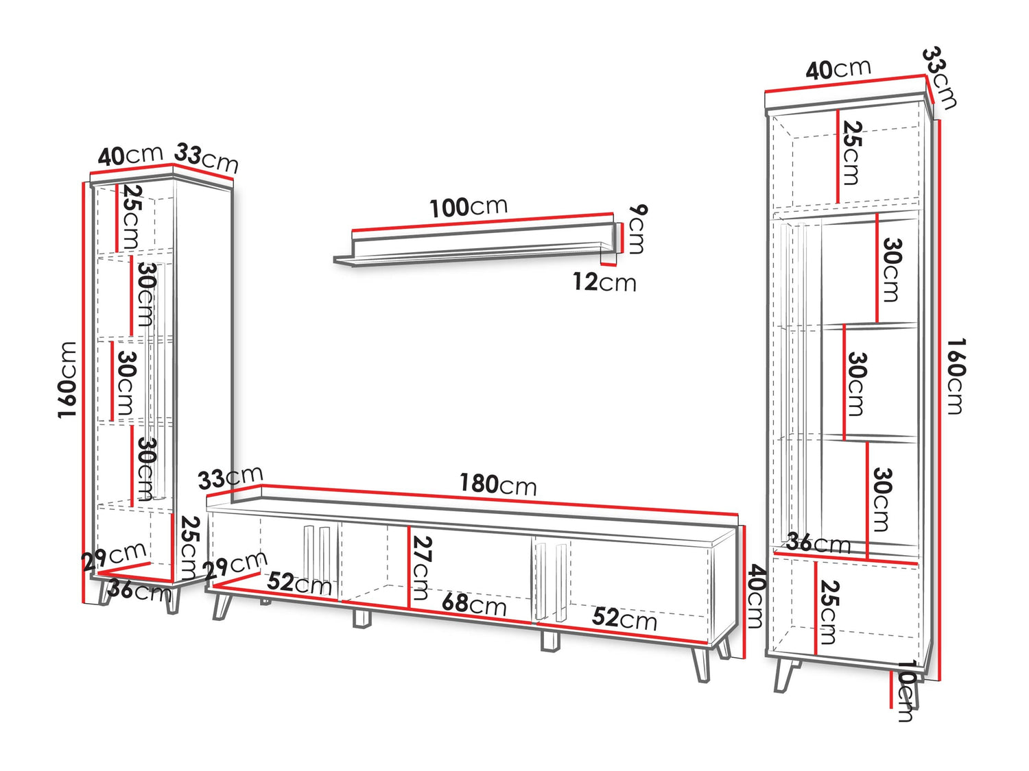 TV galda izmēri40 x 180 x 33 cm