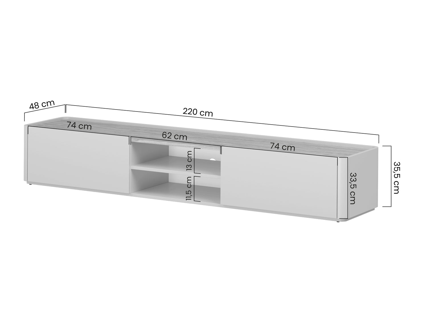 TV galda izmēri35.5 x 220 x 48 cm