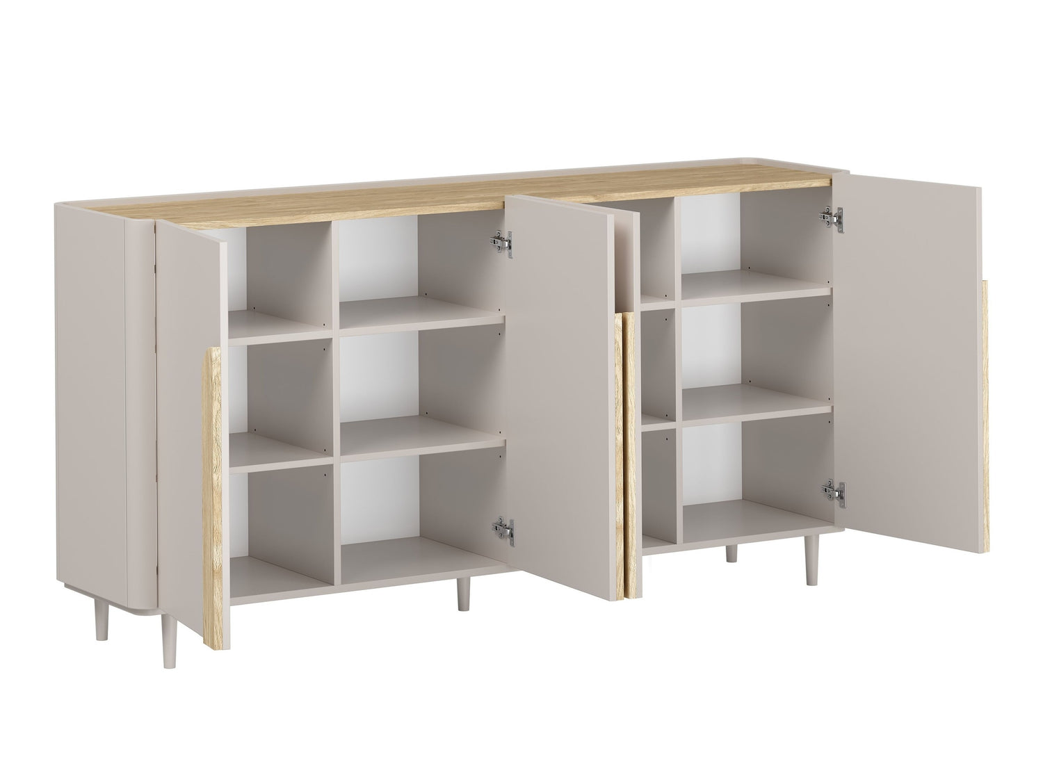 Atveriet durvis un atvilktnes tikai ar vienu pieskārienu. "Push to open" sistēma sastāv no atsperes un magnētiskā mehānisma kombinācijas durvju nospiešanai un turēšanai. Durvju atvēršanai arī eņģes ir ar īpašām kompresijas atsperēm. Pateicoties šim mehānismam, mēbelēm nav nepieciešami rokturi. Jūs varat atvērt un aizvērt durvis, un atvilktnes ar vienu klikšķi.