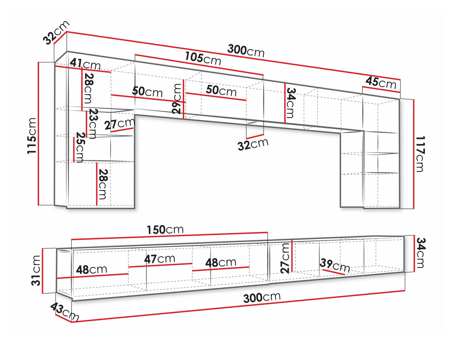 TV galda izmēri31 x 300 x 43 cm