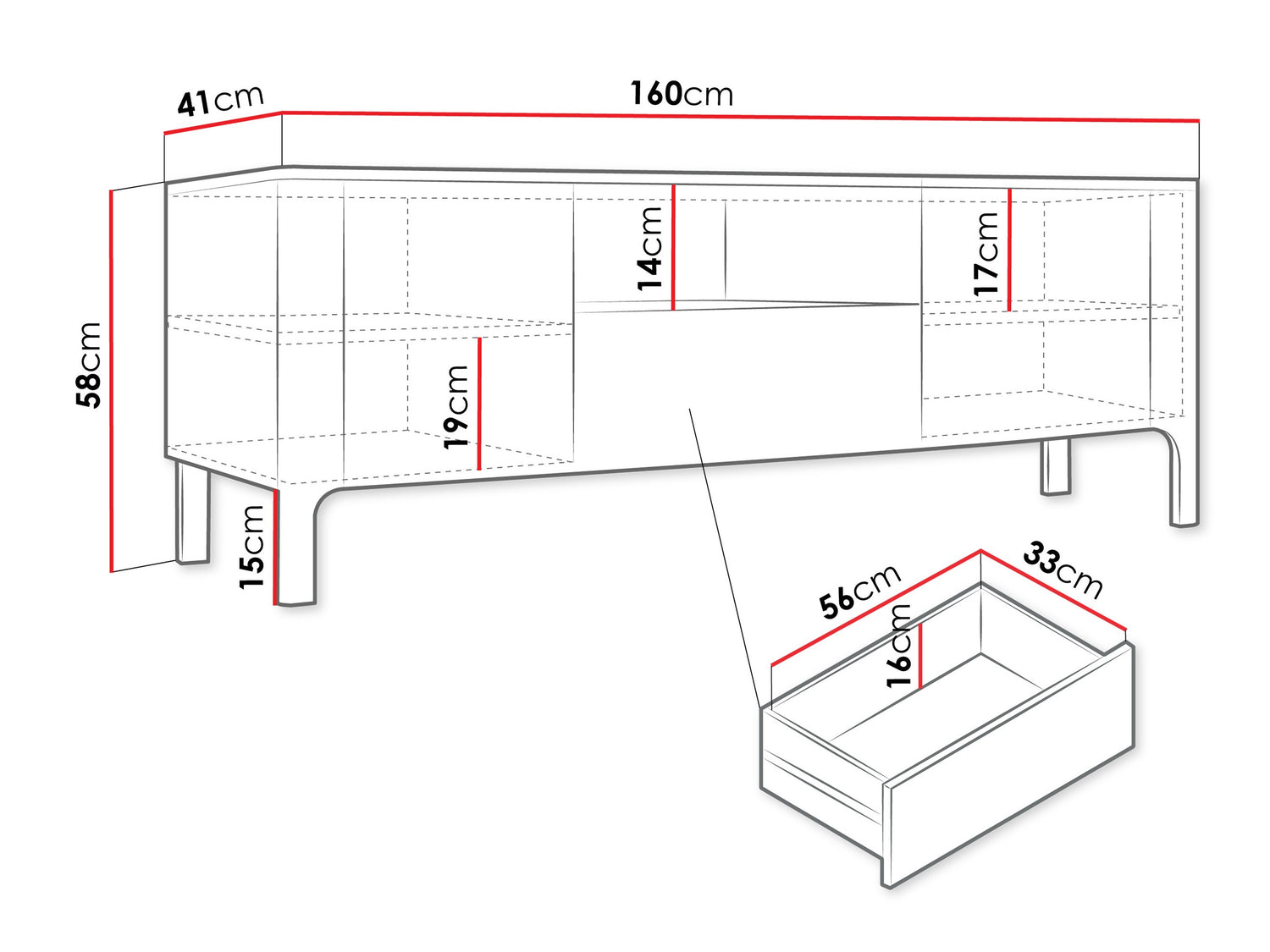 TV galda izmēri58 x 160 x 41 cm